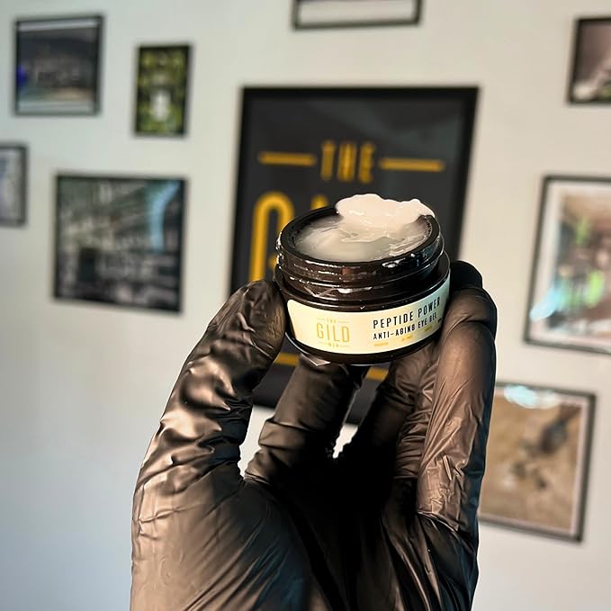 - [ EYE CREAM ANTI AGING ] The GILD Men's Peptide Power Anti-Aging Eye Gel reduces wrinkles, fine lines, and boosts elasticity to firm the skin for a youthful appearance. Cucumber and licorice extracts target puffiness and brighten the eye area. Aloe vera and hyaluronic acid deliver advanced hydration, restoring moisture and smoothing skin.