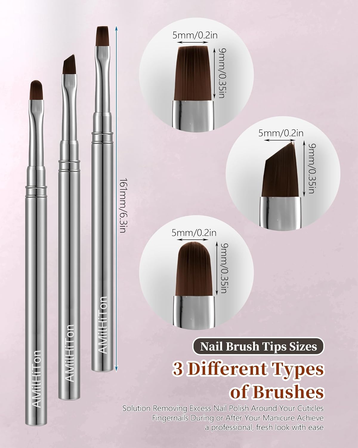 - Multi-Functional Brush Shapes: The set includes three different-shaped brushes to meet diverse cleaning needs. Tapered round brushes effectively clear large areas of excess polish, while angled tips are perfect for precise clean-up in tight areas
