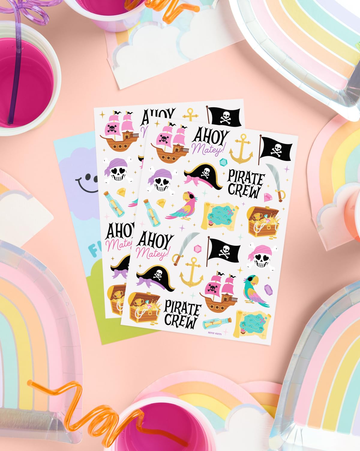 xo, Fetti Pirate Crew Temporary Tattoos - 48 Gold Foil Pcs | Birthday Accessory, Girl Treasure Hunt Decorations, Kids Ahoy Party Favor, Cute Pink Activity