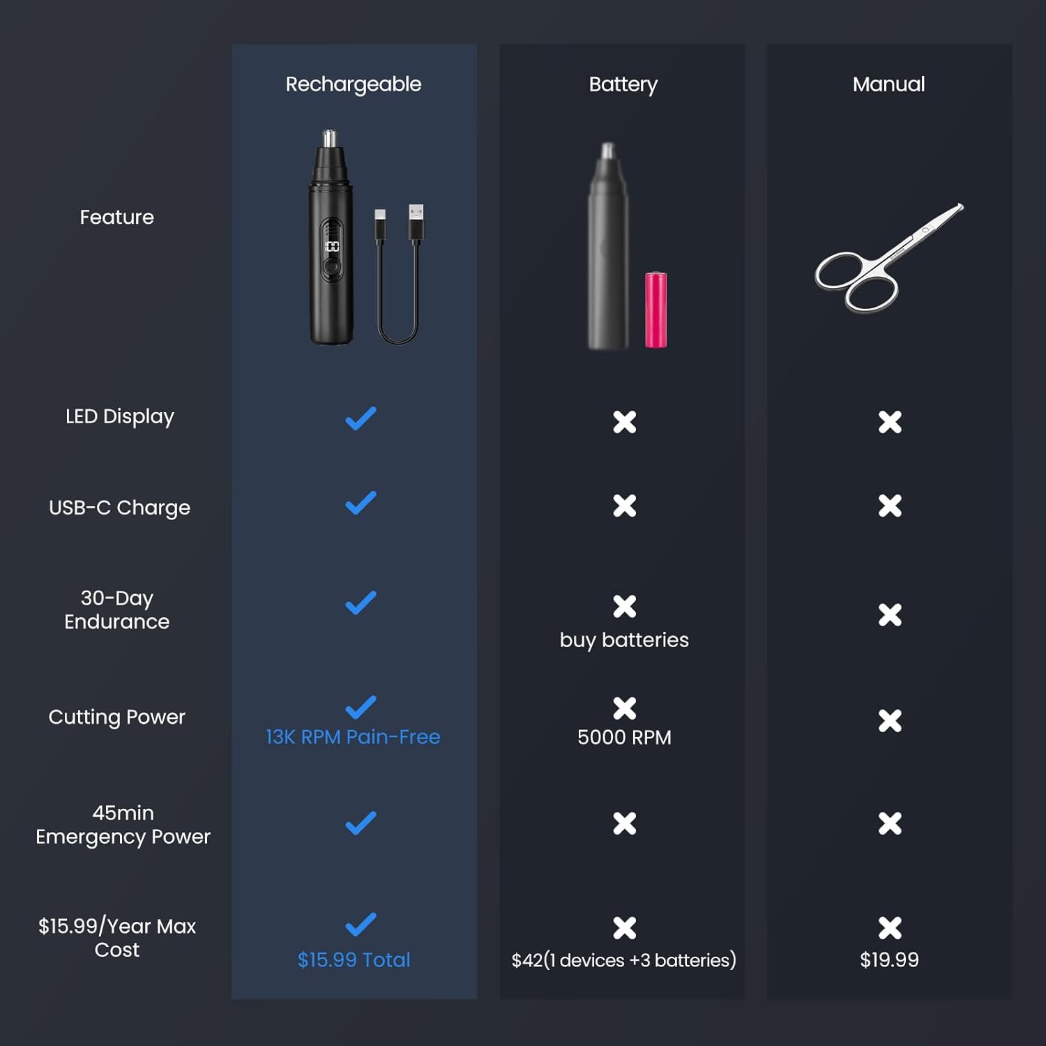 - Painless 360° Trimming: 13,000 RPM motor + 0.1mm safety mesh = 0 pulling, even for sensitive nostrils. Trim in 30 seconds—no more awkward tweezing
