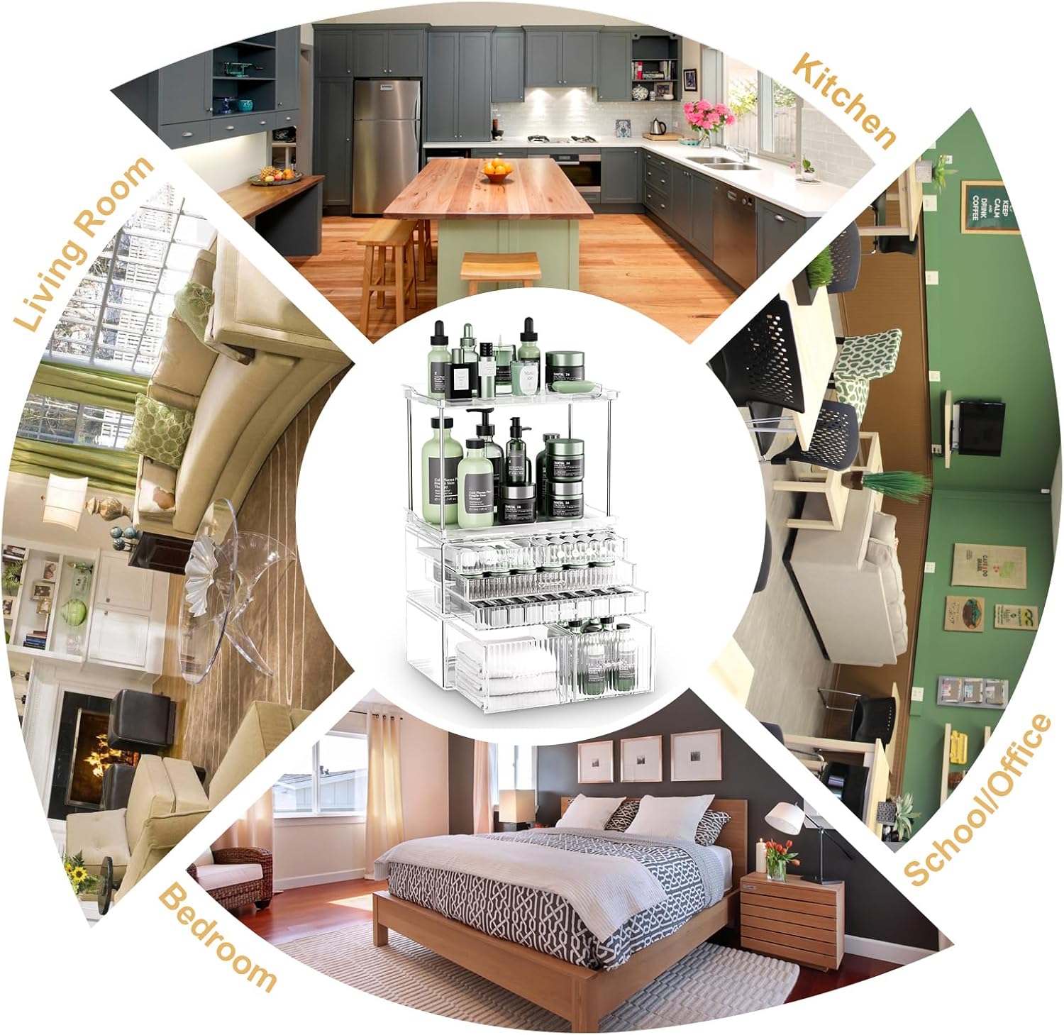 - 2-Layer, 6-Drawer Large Capacity:This bathroom organizer countertop features 8 layers and 2 drawers, offering a total of 4-tier storage. Its large capacity helps you neatly organize your cosmetics, toiletries, and skincare products. This bathroom sink organizer keeps your countertop clutter-free and enhances your quality of life.