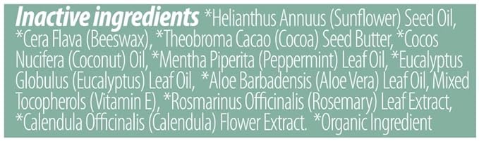 USDA Organic Lip Balm, Eucalyptus Mint with SPF 15, Beeswax, Coconut Oil, Vitamin E & Aloe Vera, 2-Pack (0.15 oz each)