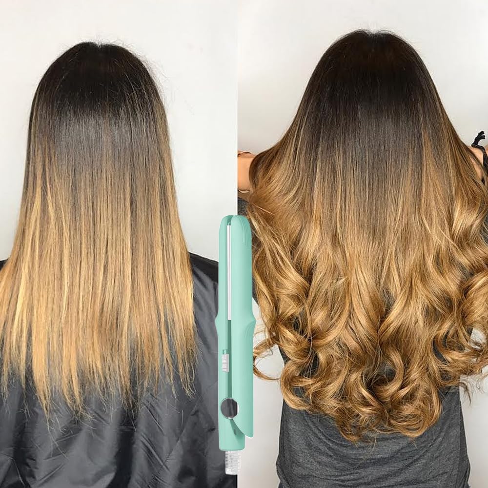 Upgrade 2-in-1 Curling Wand and Flat Iron, 2025 Upgrade Mini Dual Purpose Curling Iron, Portable Hair Straightener Travel Curling Wand for Women Short and Long Hairs, All Hair Types (Dark Green)