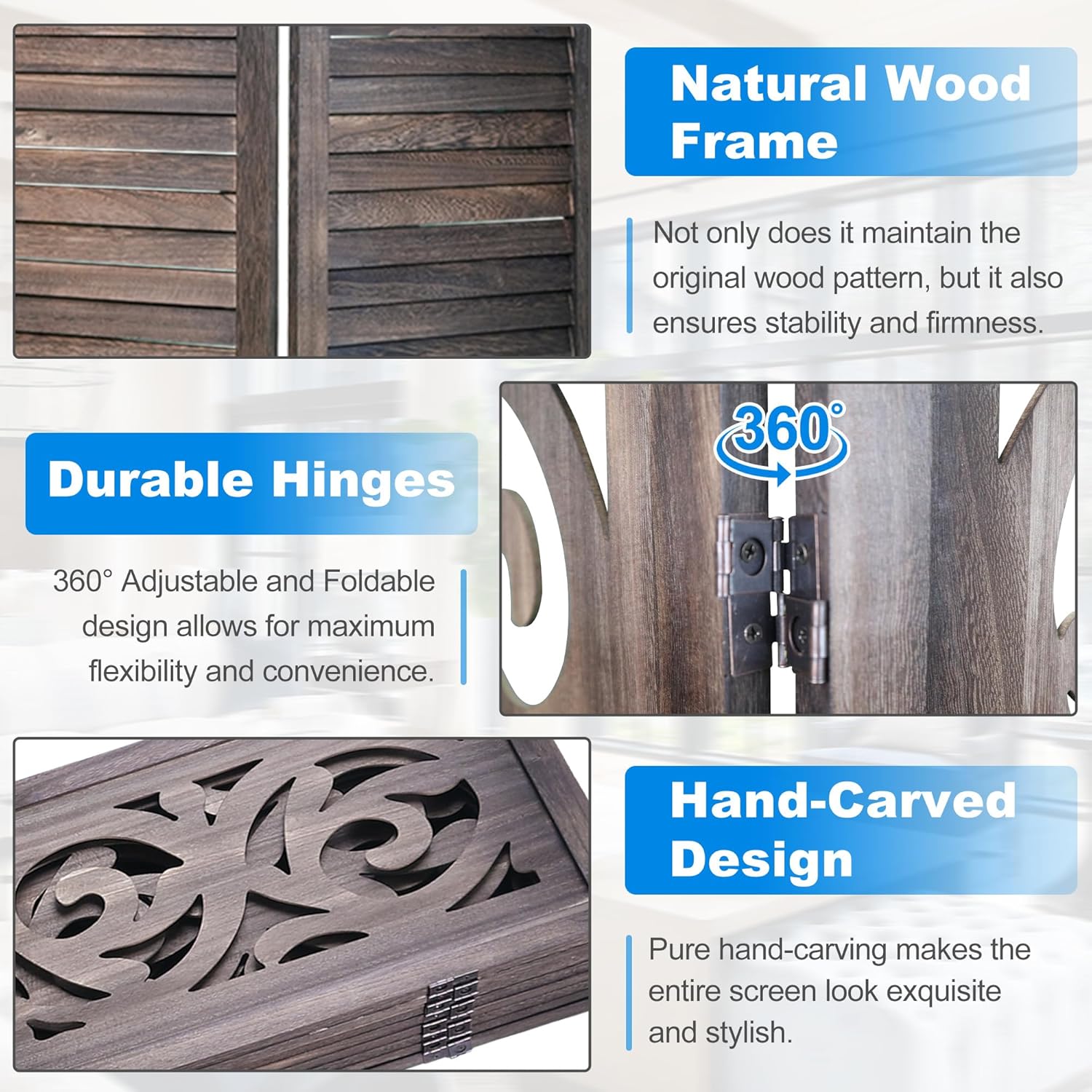 - ๐ ๏ธInstant Setup with Premium Craftsmanship: Our wooden room divider arrives fully assembled, boasting meticulous work by skilled carpenters. Say goodbye to installation headaches and hello to instant functionality โ unfold and enjoy its elegance and practicality straight out of the box!