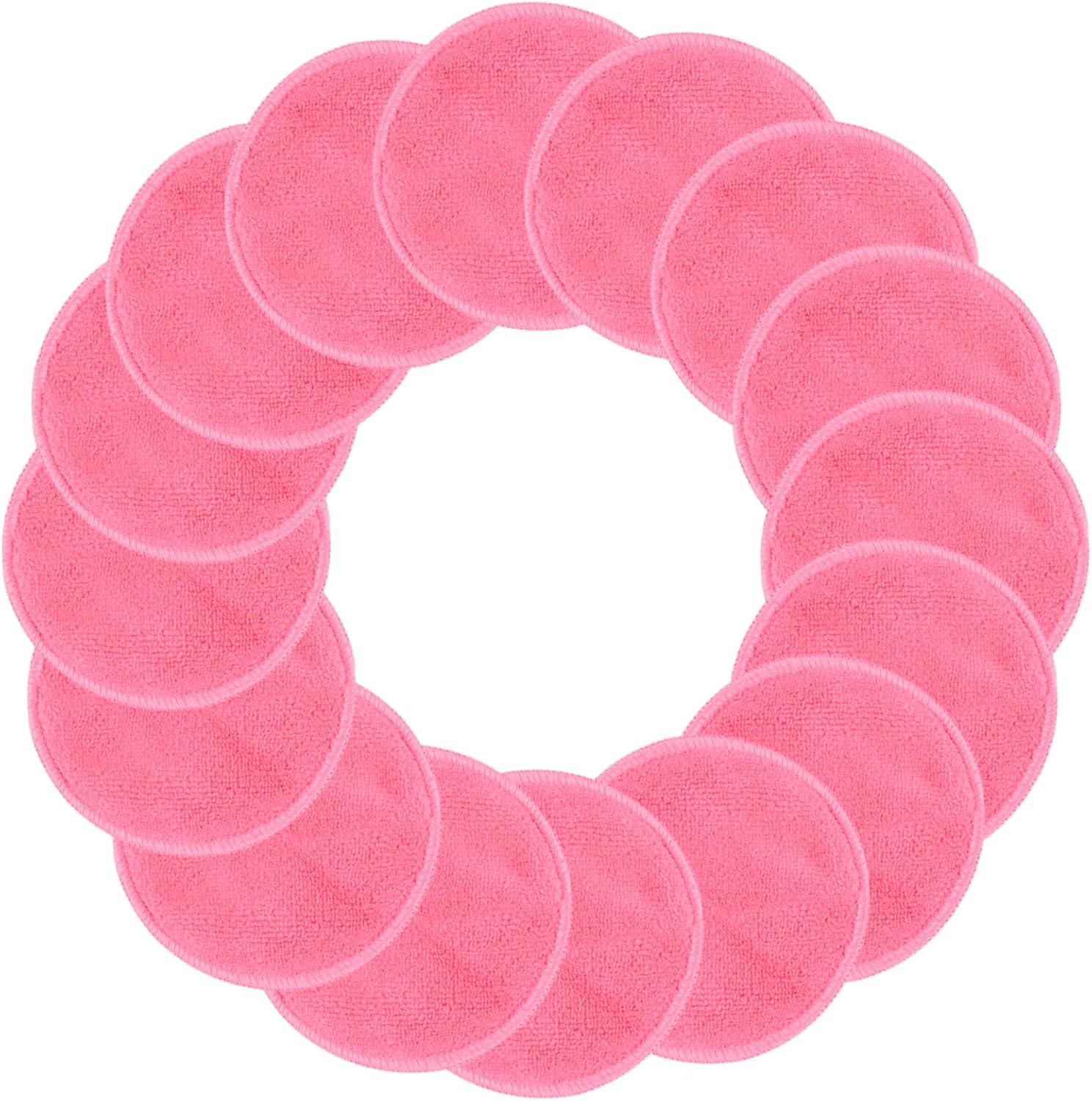 SUNLAND Reusable Makeup Remover Pads for Face,Eye,Lips 16 Pack Microfiber Face Cleansing Gloves Washable with Laundry Bag and Travel Bag Rounds Toner Pads(Round 3.15inchx16 Pink)