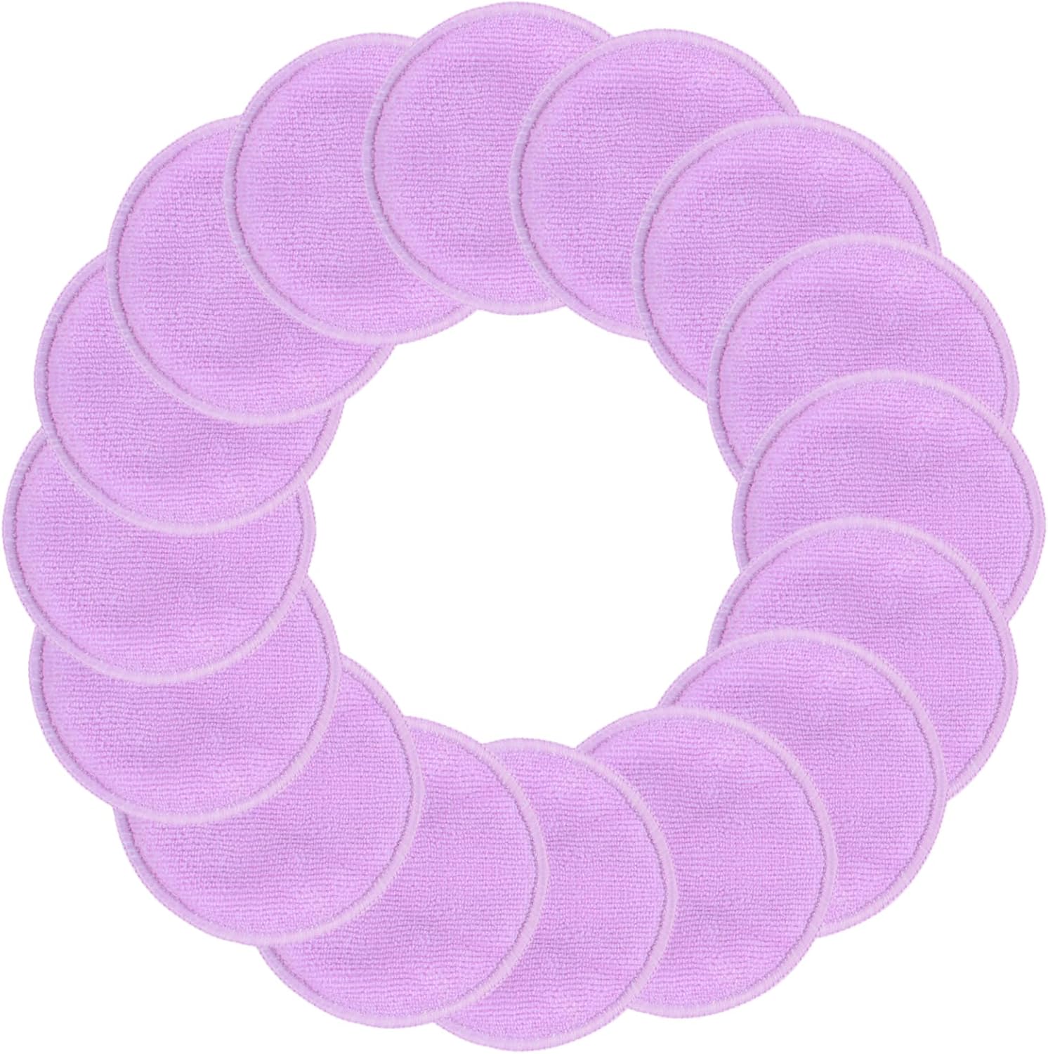 SUNLAND Reusable Makeup Remover Pads for Face,Eye,Lips 16 Pack Microfiber Face Cleansing Gloves Washable with Laundry Bag and Travel Bag Rounds Toner Pads(Round 3.15inchx16 Purple)