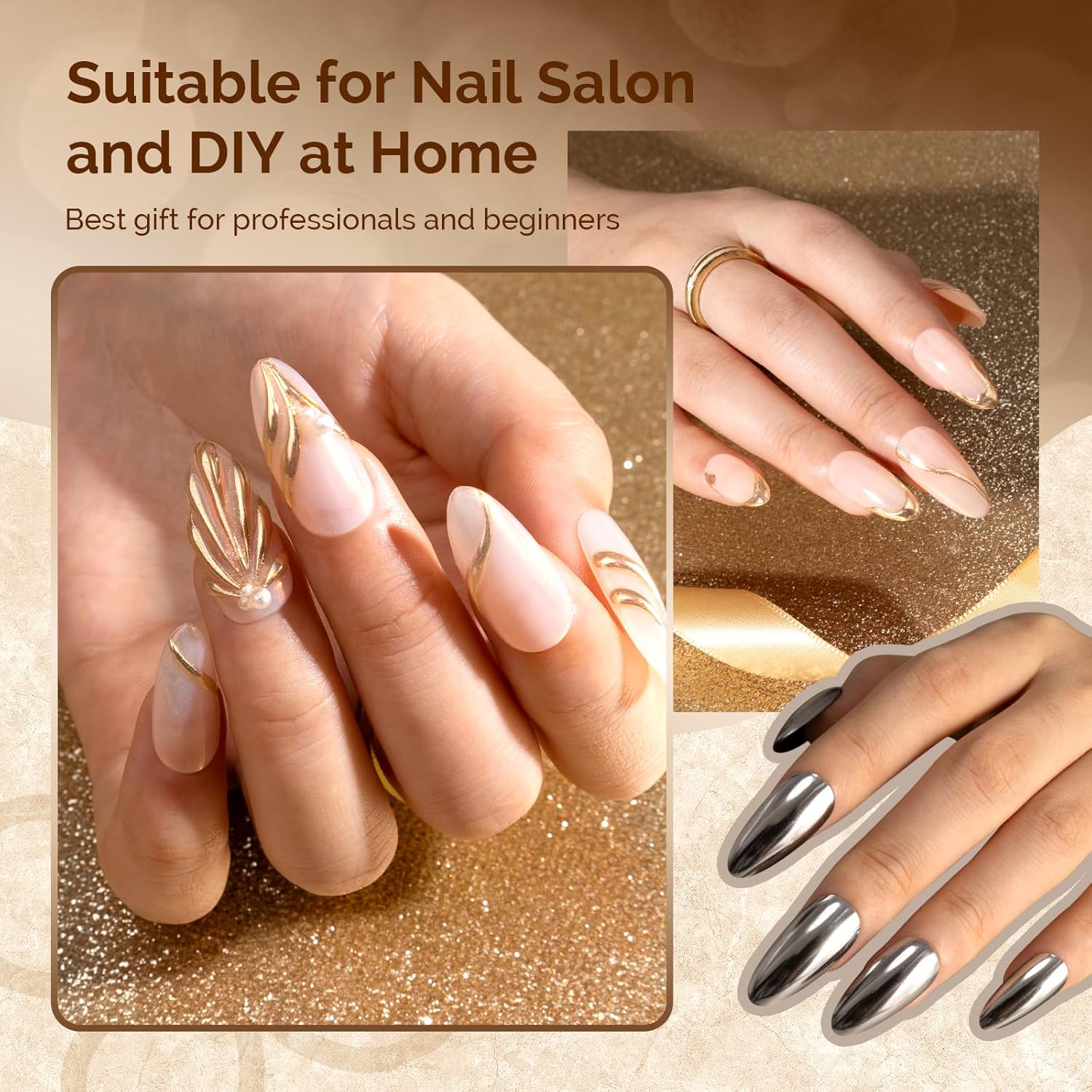 - Wide Range of Applications: Suitable for UV gel nails,acrylic nails,natural nails or false nails.Easy to get a salon grade chrome effect without special techniques.Powder is easy to apply and suitable for beginners