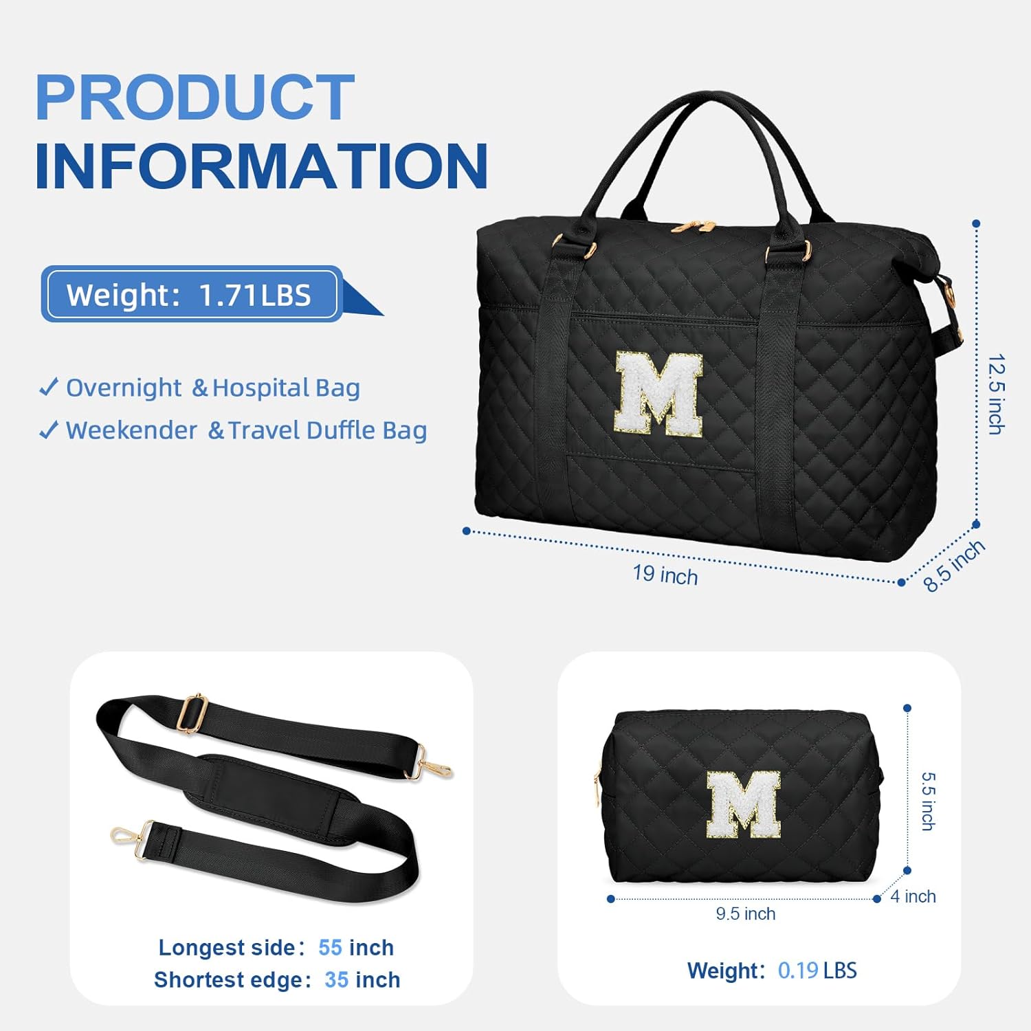 - Personalized Initial Weekend Bag: Our weekend bag features personalized initials, you can choose your initials or give them to others as gifts, which makes them feel warm. Includes a matching toiletry bag with the same letters for storing cosmetics and travel essentials