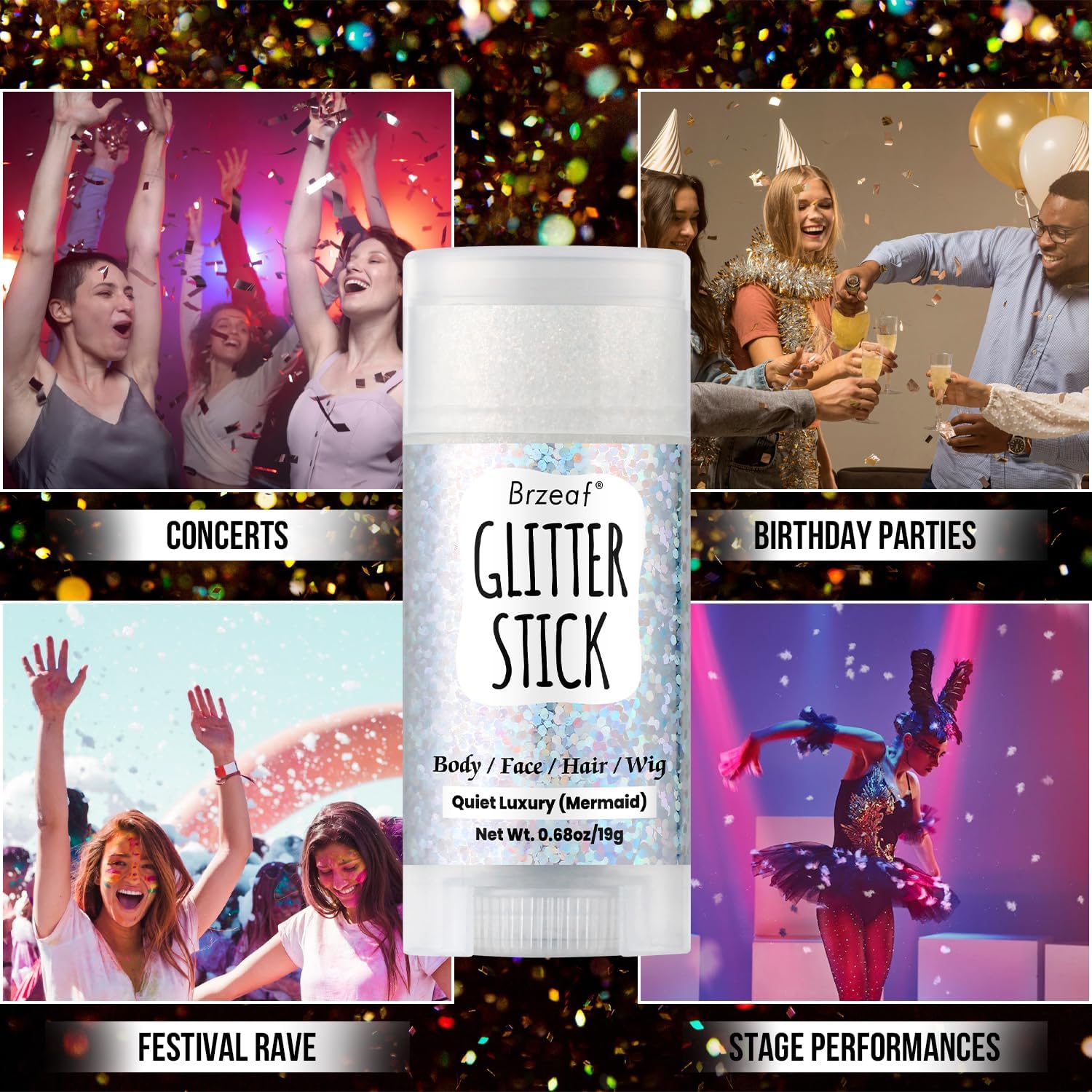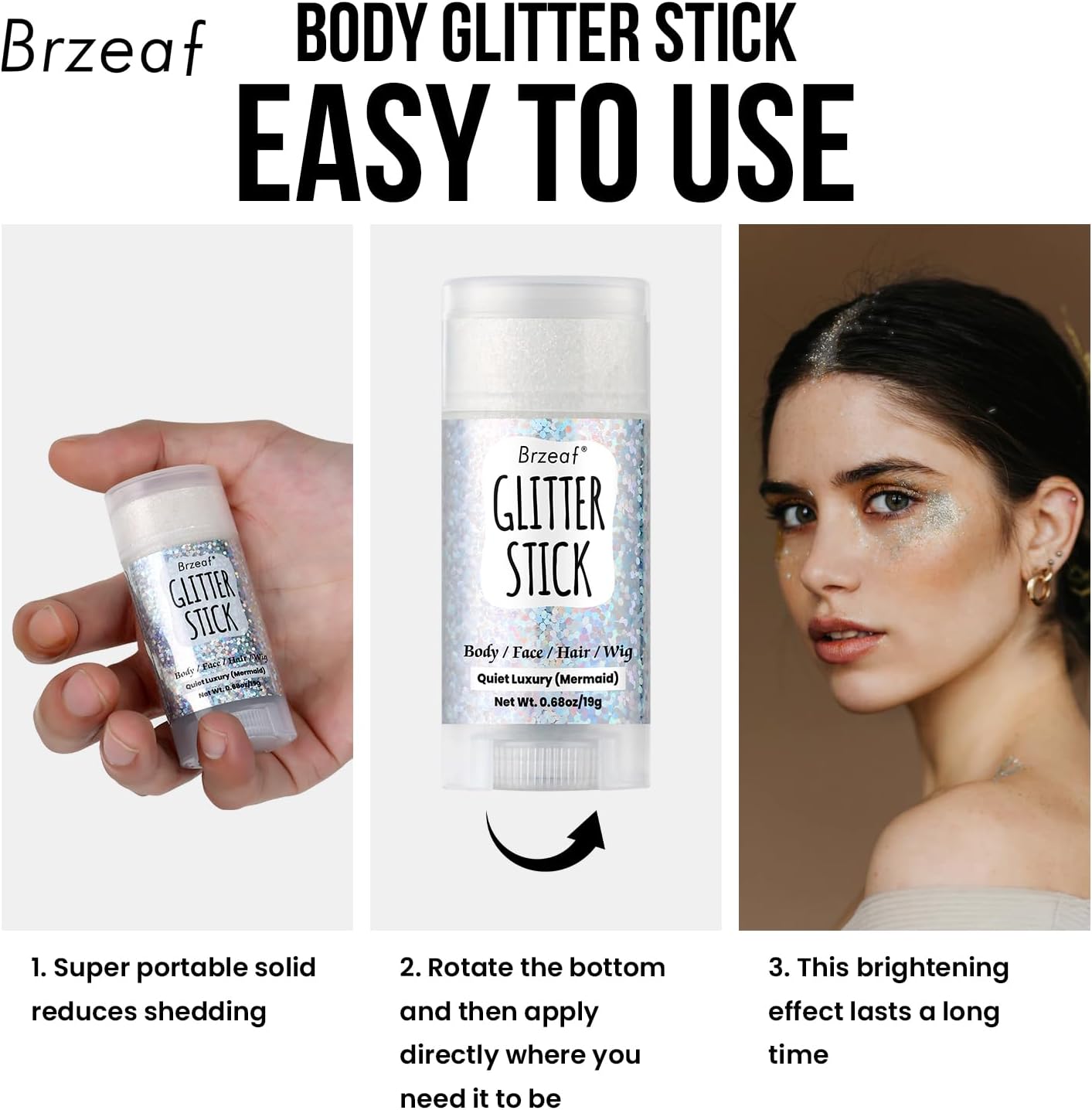 - 【Wide Range of Applications】Our glitter stick makeup can be used in many applications. For example, music festivals, concerts, birthday parties, stage performances, holiday events and various other occasions. You can in use mermaid glitter cream to decorate your face, hair, body, eye shadow and other various parts. Let your makeup shine all over, let the pearlescent illusion hold your beauty.