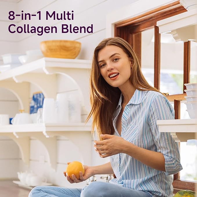 - Support Your Skin, Joints & Bones:Our multi-collagen formula combines 5 types of collagen peptides (I, II, III, V, X) from bovine, fish, chicken, and eggshell membrane to improve skin elasticity, support joint flexibility, and help keep your bones strong. Whether you're looking to maintain youthful skin or stay active with flexible joints, this collagen supplement fits right into your routine.