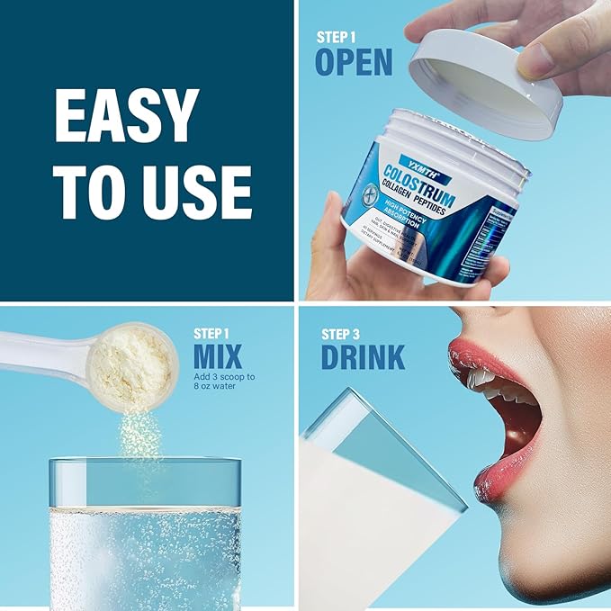 - Easy to Mix: Simply mix a scoop of powdered milk with water, juice, or your favorite beverage to effortlessly incorporate colostrum powder into your daily routine, bringing vitality with every sip