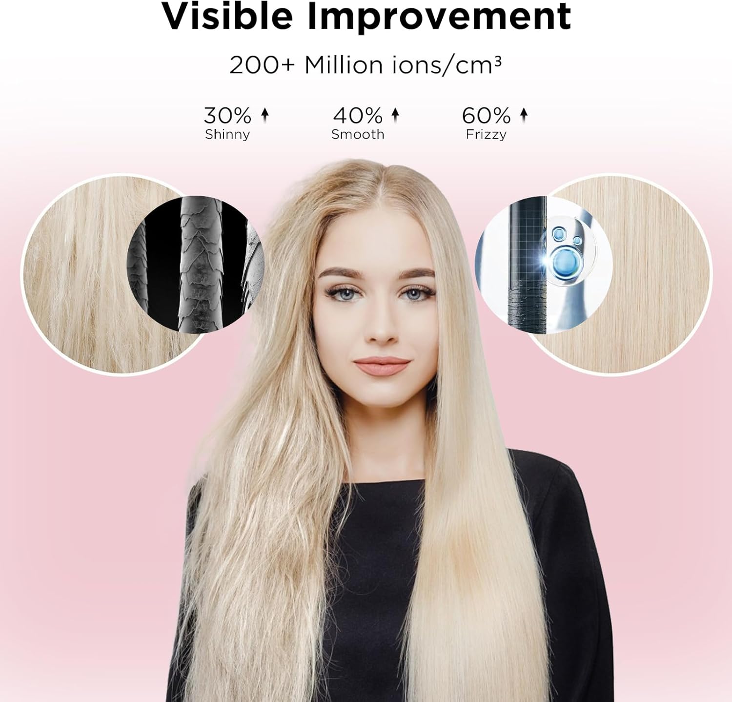 - Negative Ion Technology and Constant Temperature Hair Care: 200 million negative ions during the drying process, helping your hair stay silky without frizz, leaving you a salon-quality finish every time. The IG INGLAM blowdryer features built-in intelligent constant temperature processing, reducing the risk of heat damage to the hair