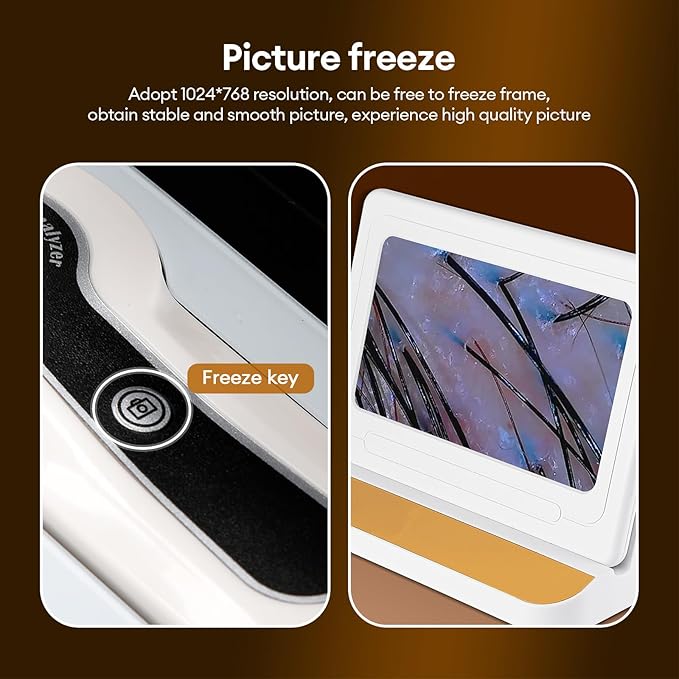 - Advanced Hair Analyzer Skin Analyzer Machine:Our scalp microscope can Identifies skin and scalp health and also monitors the resilience of the hair strands and the vitality of the hair roots, ensuring an accurate assessment for optimal hair and skin care. Perfect for professional salons and spas ,home use