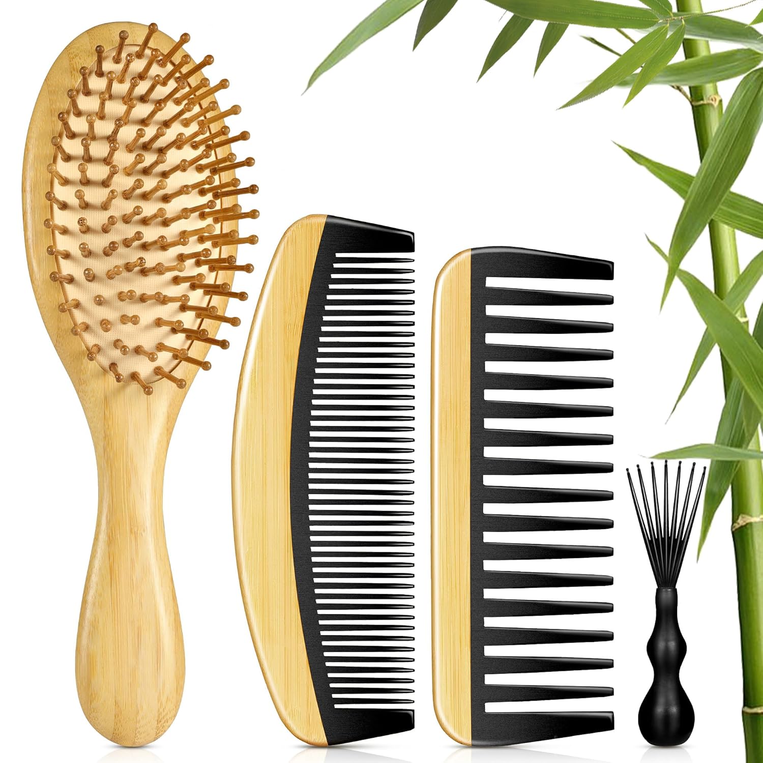 - Perfect Hair Brush Set: The comb set includes a bamboo paddle hair brush with an air cushion, a wide-tooth comb, a fine-tooth comb, and a cleaning tool. These items are designed to meet your various usage needs