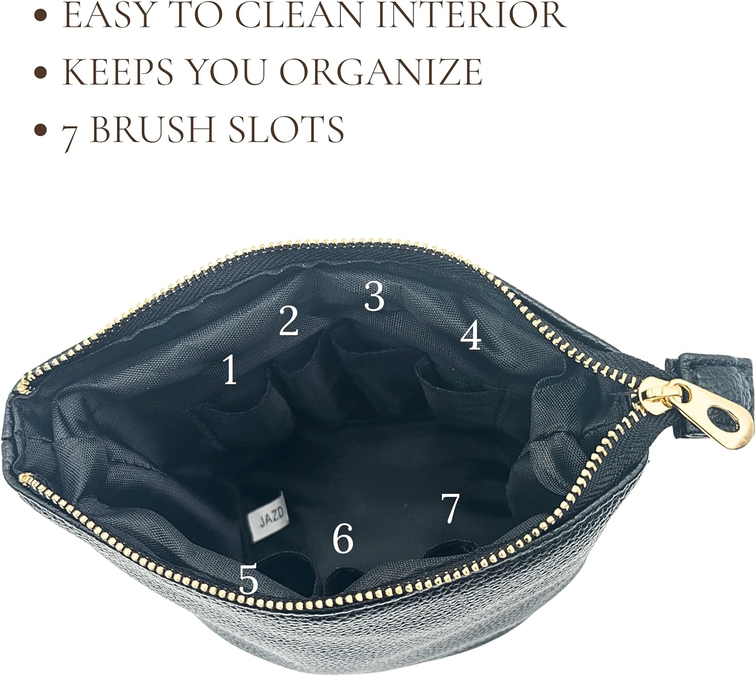 JAZD Convertible Travel Makeup Brush Bag, Stand-Up Brush Holder Pouch For Easy Access, Cosmetic Case Organizer (BLACK)