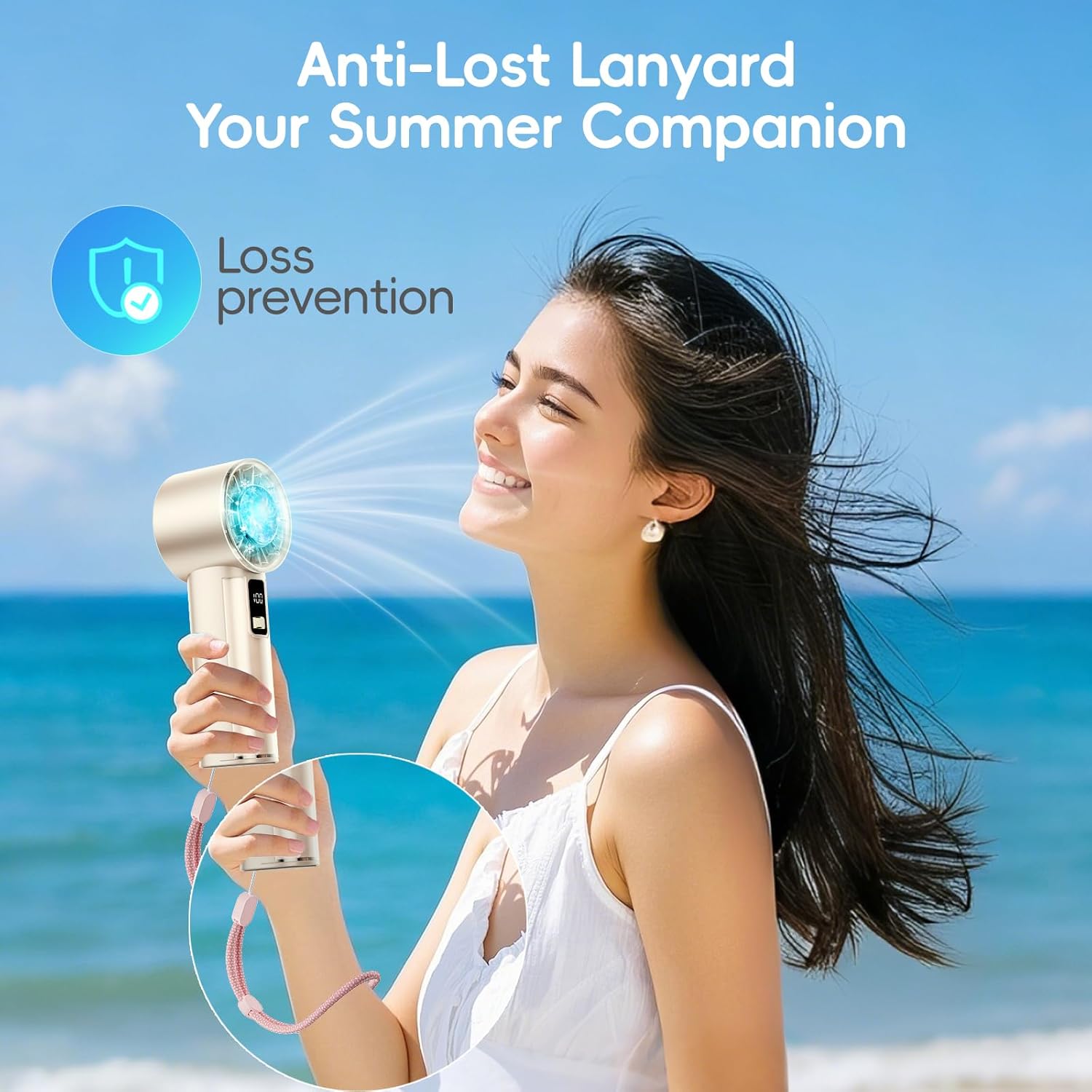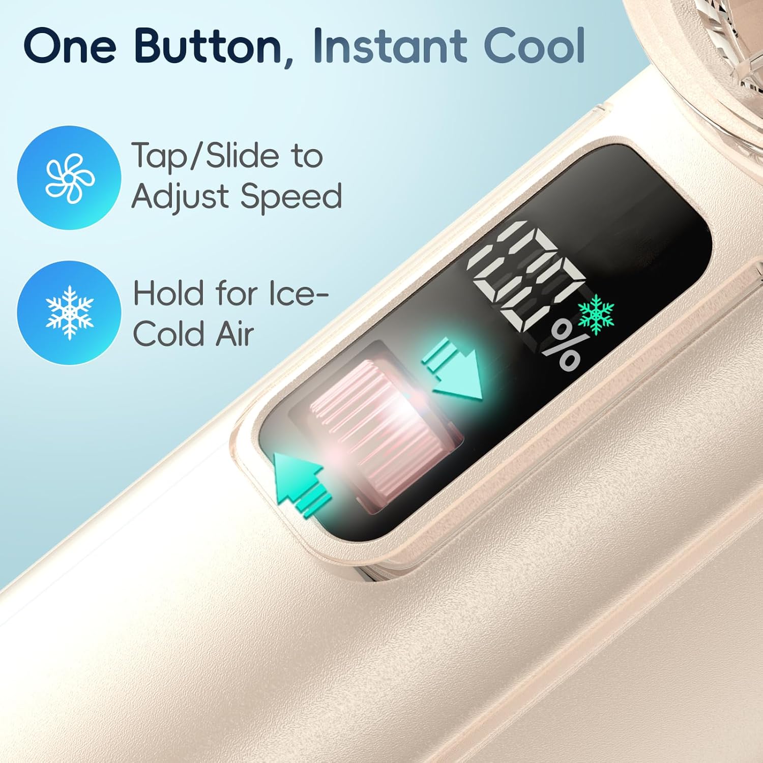 PANERGY High Speed Handheld Fan with Ice Cooler,1-100 Speed Adjustable Mini Turbo Fan, 4000mAh Battery Rechargeable & Digital Display,Gifts for Women Men Travel/Office/Beach/Camping(Beige)