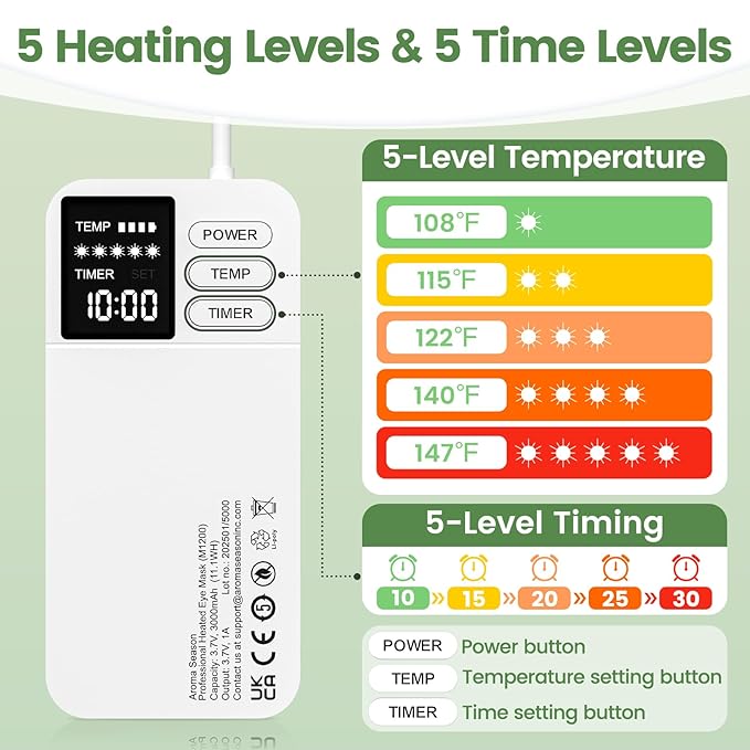 - 【3000mAh Large Capacity Battery】For enhanced safety, the 3000mAh rechargeable battery is located on the controller, which is connected to the eye mask and lasts for over 150 minutes on a full charge.
