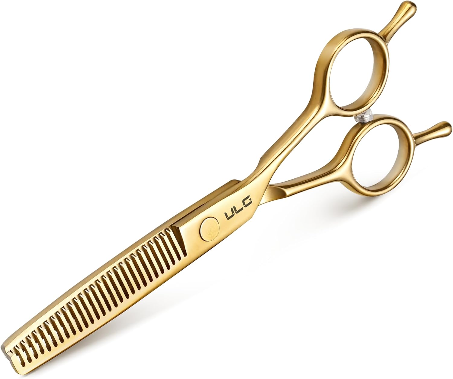ULG Professional Texturizing & Thinning Shears - 6.5’’ Hair Cutting Scissors, Ultra Sharp Japanese Stainless Steel, Ambidextrous Ergonomic Handle for Barbers, Stylists, Salon & Home Use, Gold