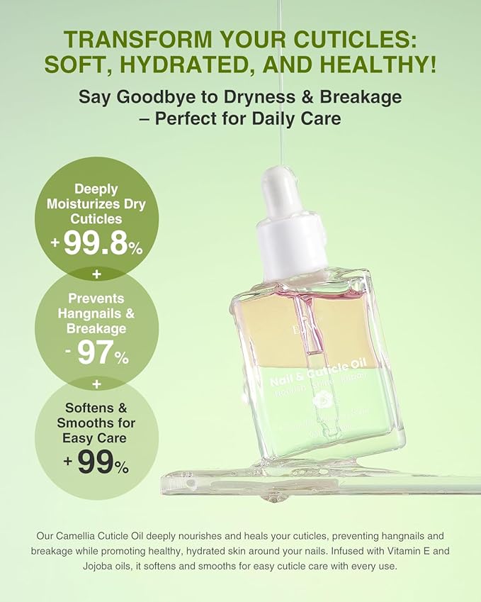 - Indulge in Luxurious Hydration – Enriched with the finest camellia blossom extract, this exquisite oil delivers deep hydration, transforming dry cuticles and brittle nails into soft, nourished perfection;