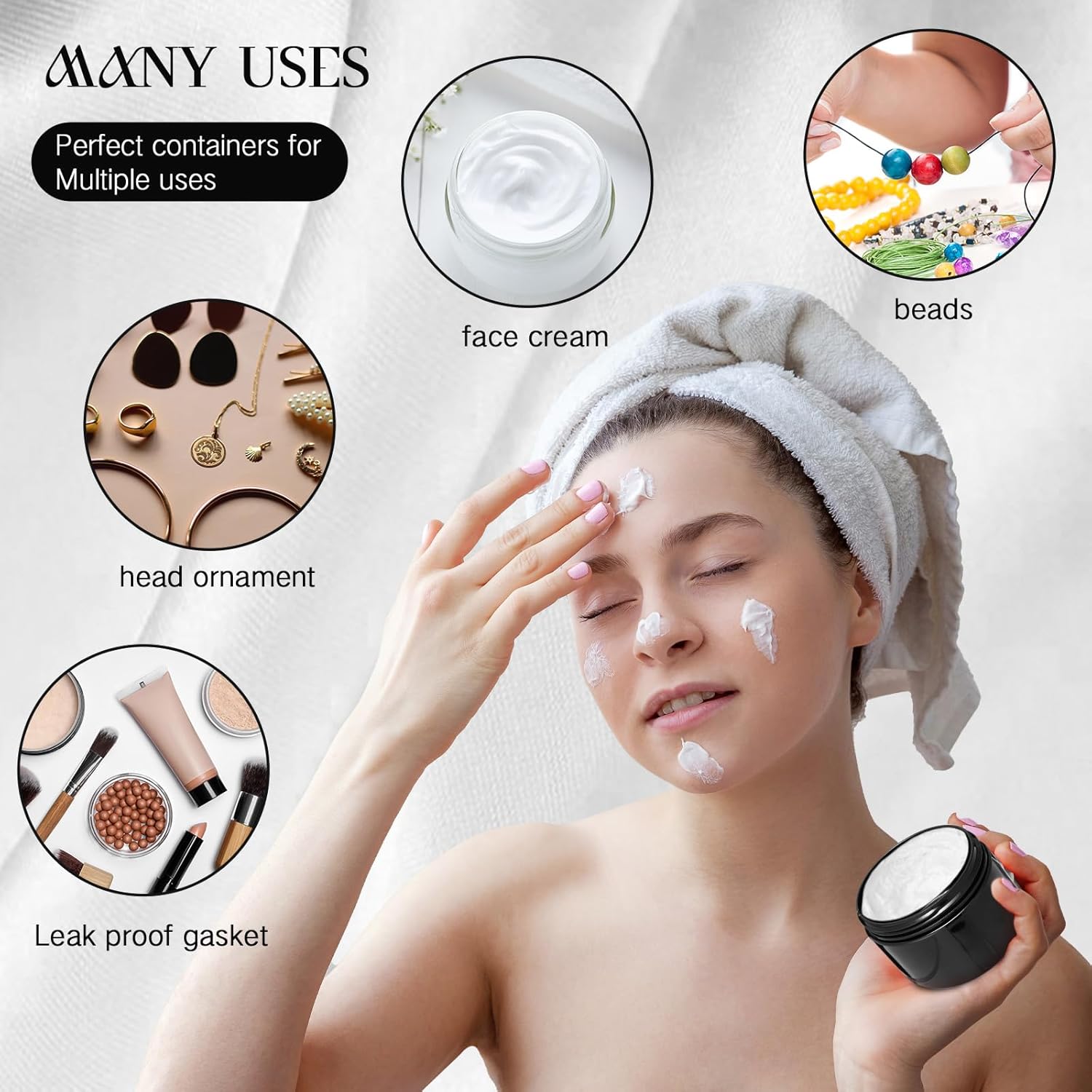 Patelai 4 Pieces Round Wide-mouth Leak Proof Plastic Container Jars with Lids for Travel Storage Makeup Beauty Products Face Creams Oils Salves Ointments DIY Making(6 Ounce,Pure Black)