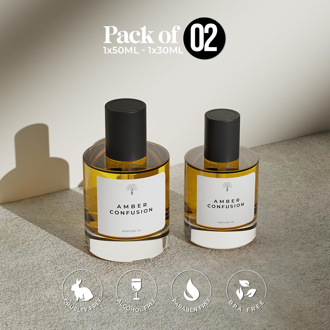 Eternal perfume oils for Women and Men - Amber Confusion Insp. by Alien Hypersense - Eau De Perfum Scents- Alcohol-Free Perfume Oil for women - Long Lasting Designer Perfumes 50ml+30ml (Pack of 2)
