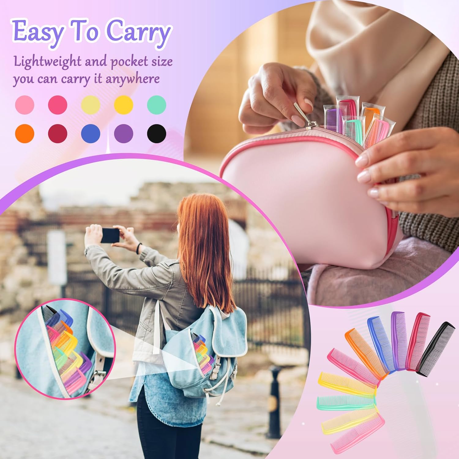 HOFASON 200 Pack Combs Bulk for Women Kids Homeless, Individually Wrapped Plastic Pocket Hair Combs Set Small Bulk Travel Combs for Styling, Homeless, Hotel, Shelter, Nursing Home, Charity, 10 Colors