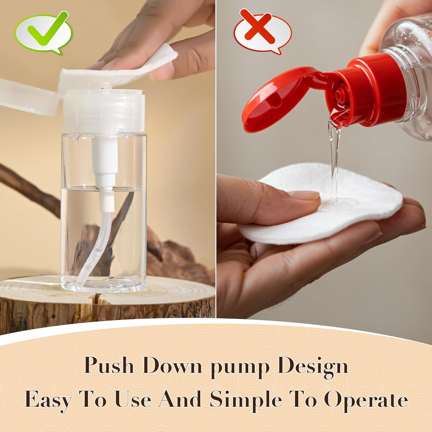 - Leak-proof:Press the top of the dispenser and the liquid rises to the top without spilling.Lockable design flip top cap ,prevent mistakenly press.Use with cotton ball, swabs, brushes and nail towel for better results.