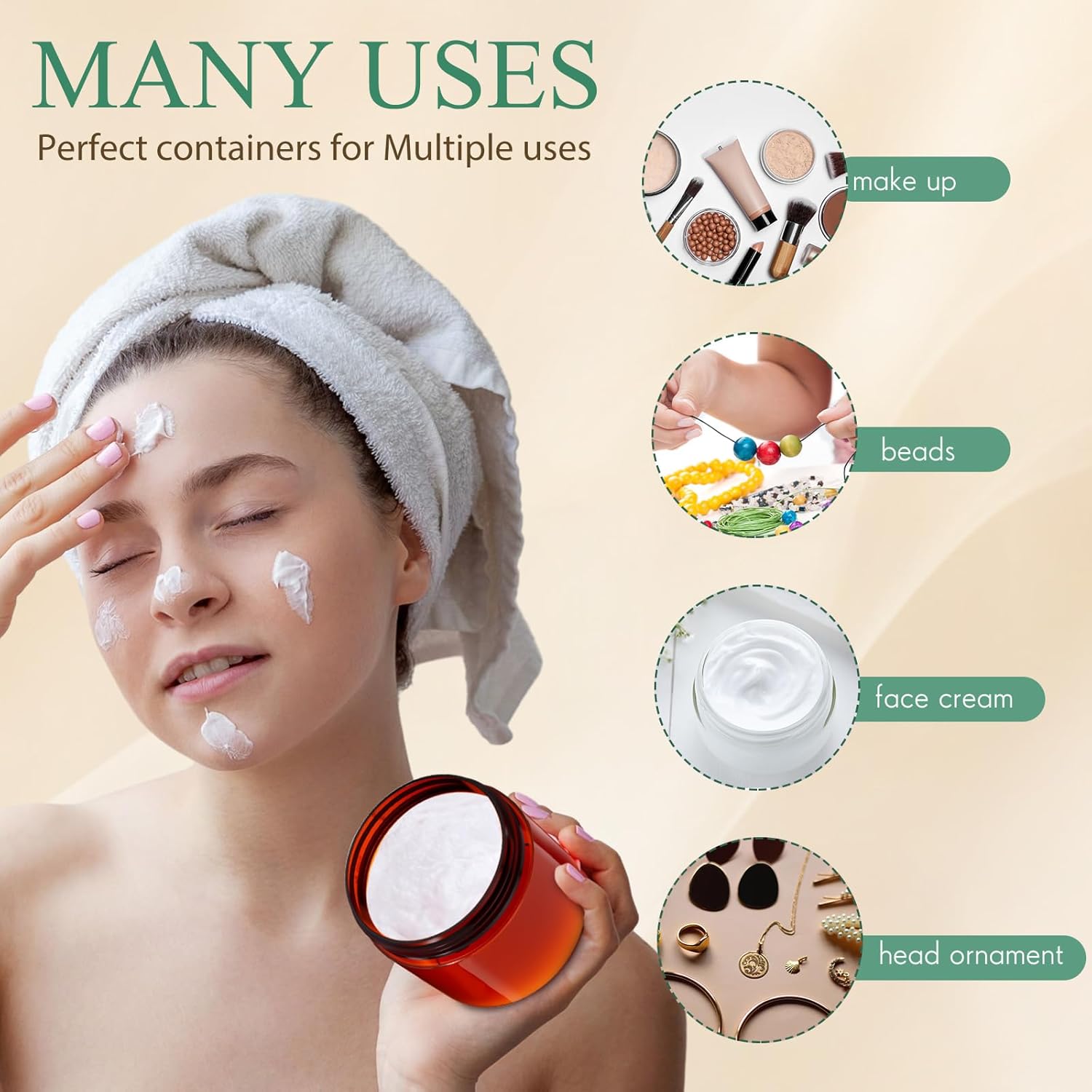 SATINIOR 12 Pack 6 oz Plastic Container Jars with Lids Round Clear Travel Cosmetic Container Slime Jars for Toiletries, Lotion, Cream, Ointments, Makeup, Rhinestone, Samples, Kitchen Storage(Amber)