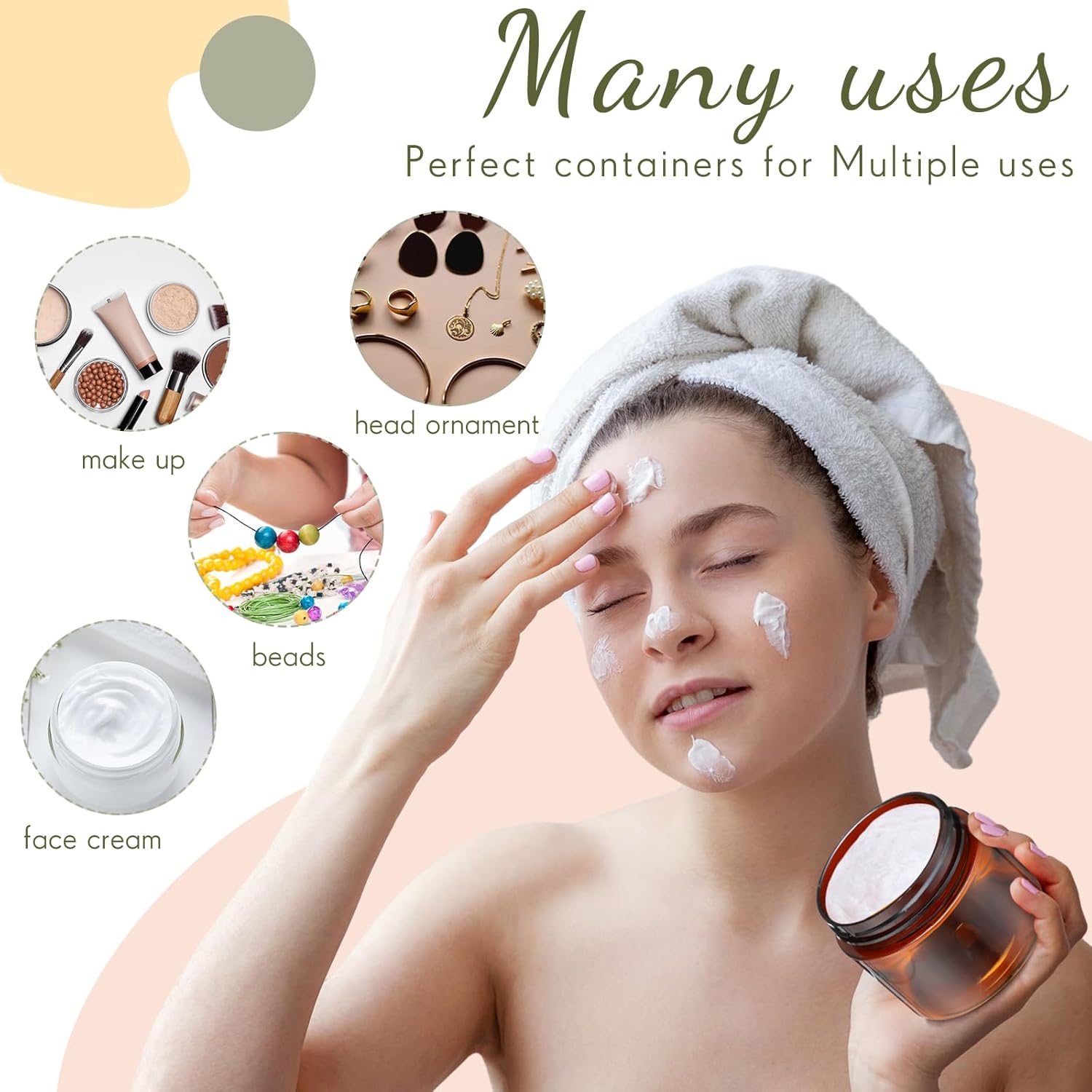 SATINIOR 12 Pack 2 oz Plastic Container Jars with Lids Round Clear Travel Cosmetic Container Slime Jars for Toiletries, Lotion, Cream, Ointments, Makeup, Rhinestone, Samples, Kitchen Storage(Amber)