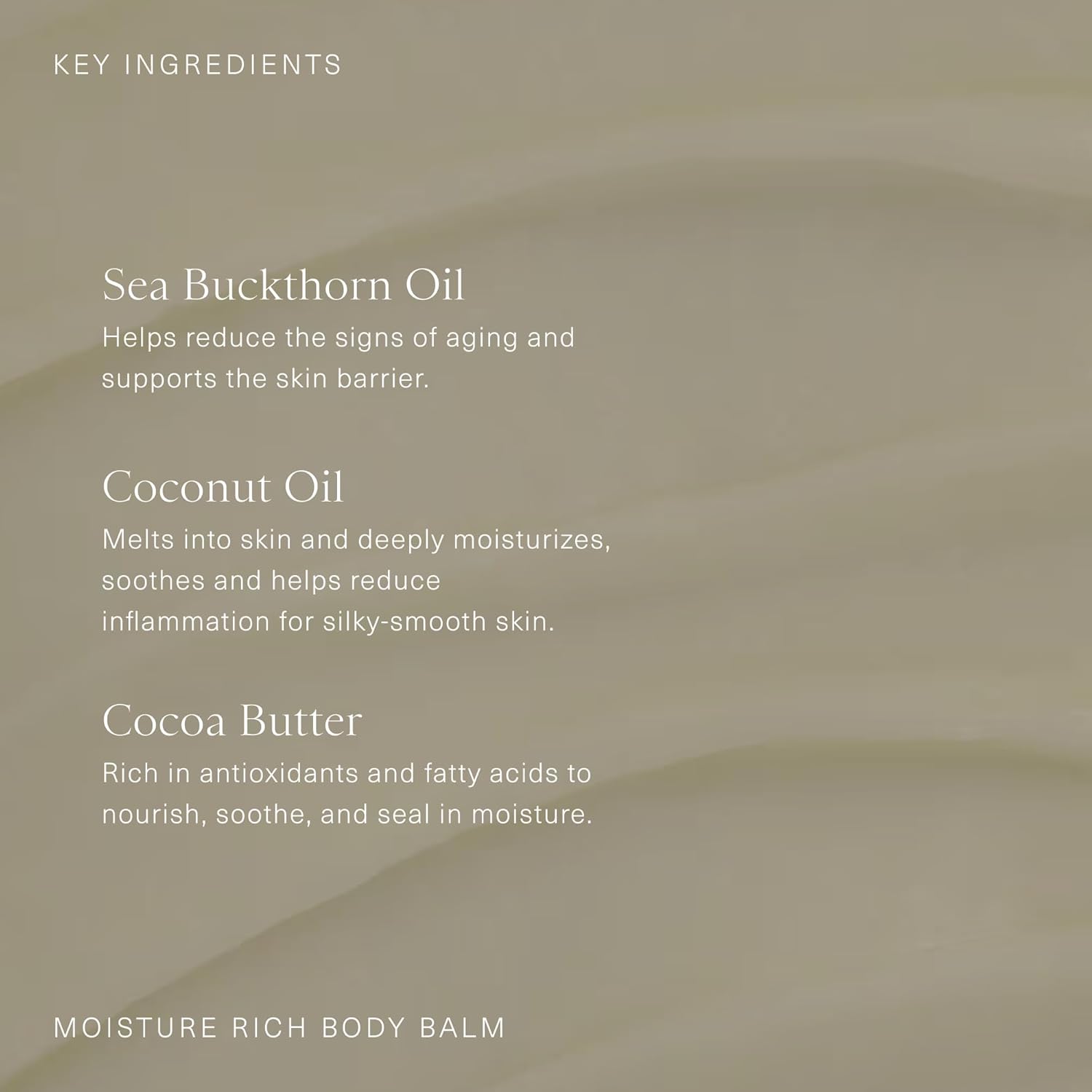 - Ultra-Rich Melting Body Balm: Concentrated formula with skin-softening Cocoa Butter & anti-aging Sea Buckthorn Oil helps protect the skin's natural moisture barrier. Lavender and Balsam aromatherapy notes deliver a calming, spa-like experience.