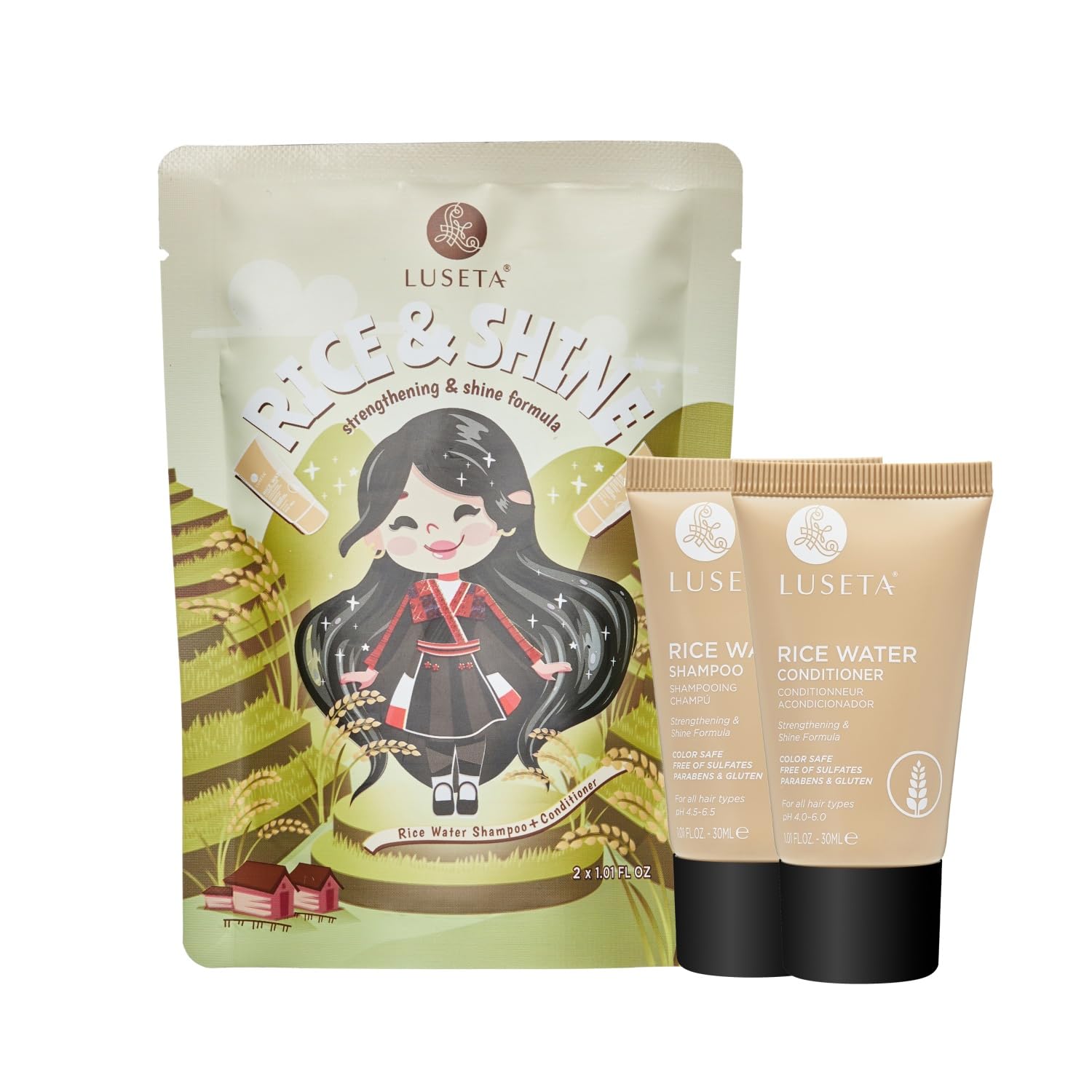 Luseta Rice Water Shampoo and conditioner Set Strengthening & Nourishing Revitalizes Shine for All Hair Types Hydrating & Frizz Control for Women and Men 1.01oz*2