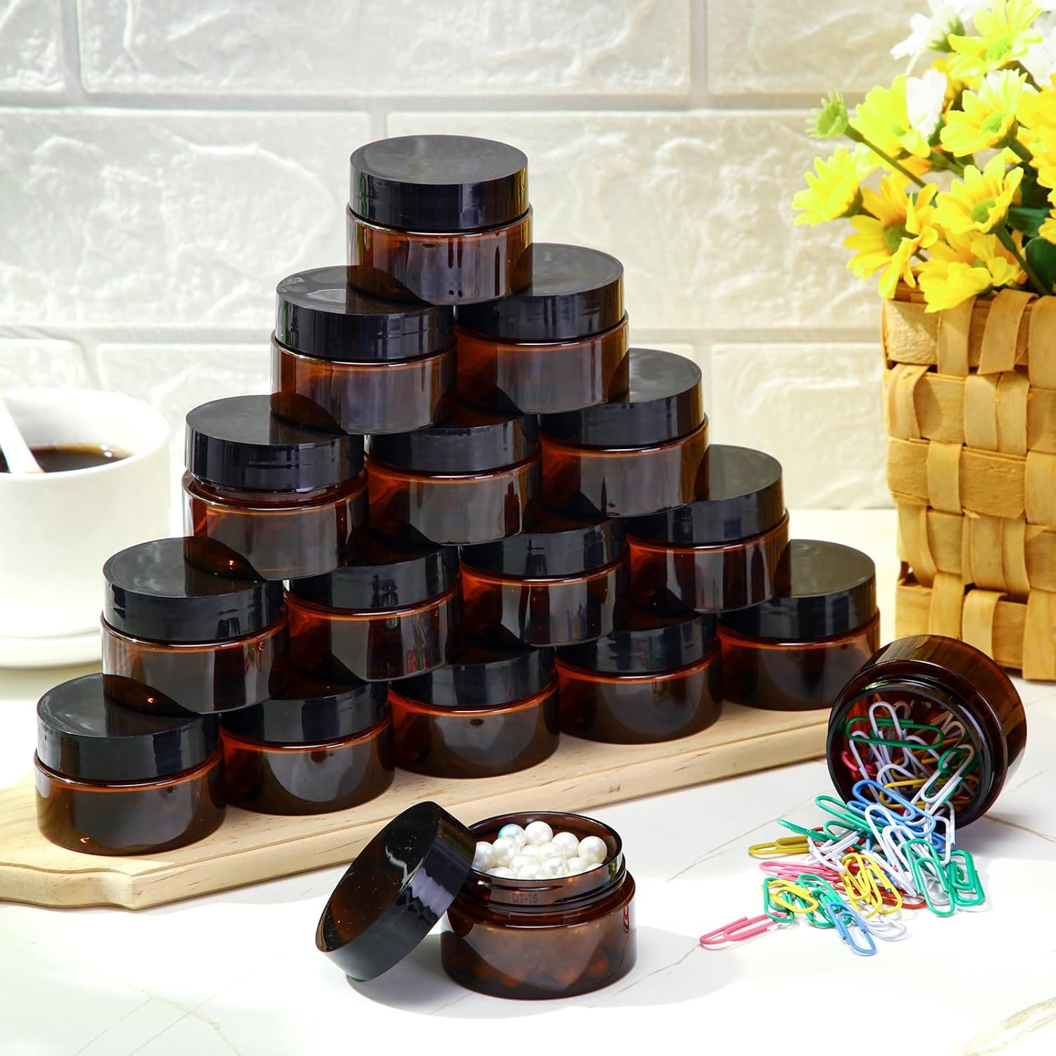 200 Pcs 1 oz Empty Bulk Plastic Container Jars with Lid Leak Proof Round Plastic Jars Small Cosmetic Travel Containers for Storage Makeup Creams Lotion Ointments, Amber