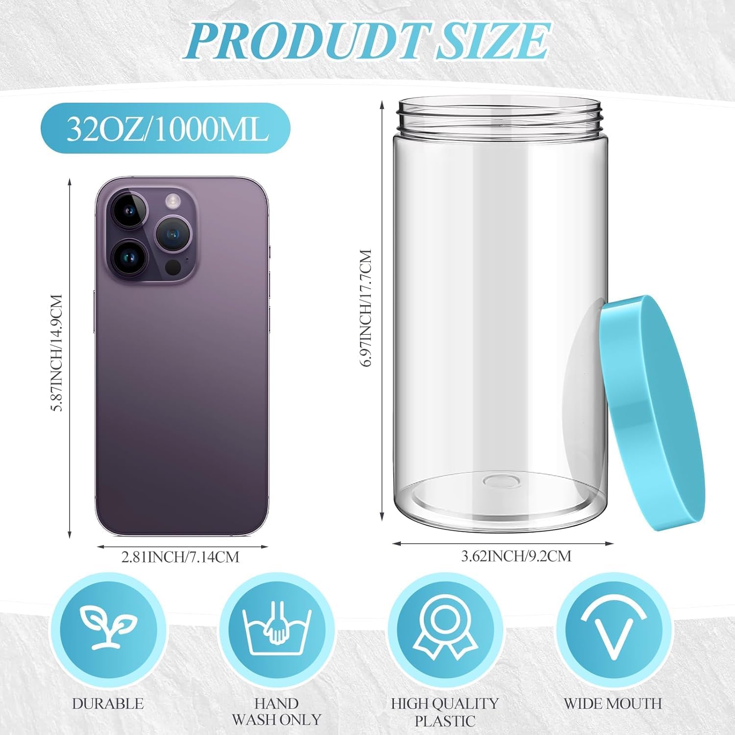 - Easy to Use: the plastic jars are straight sided and round with thick walls; They are reliable and resistant to impact