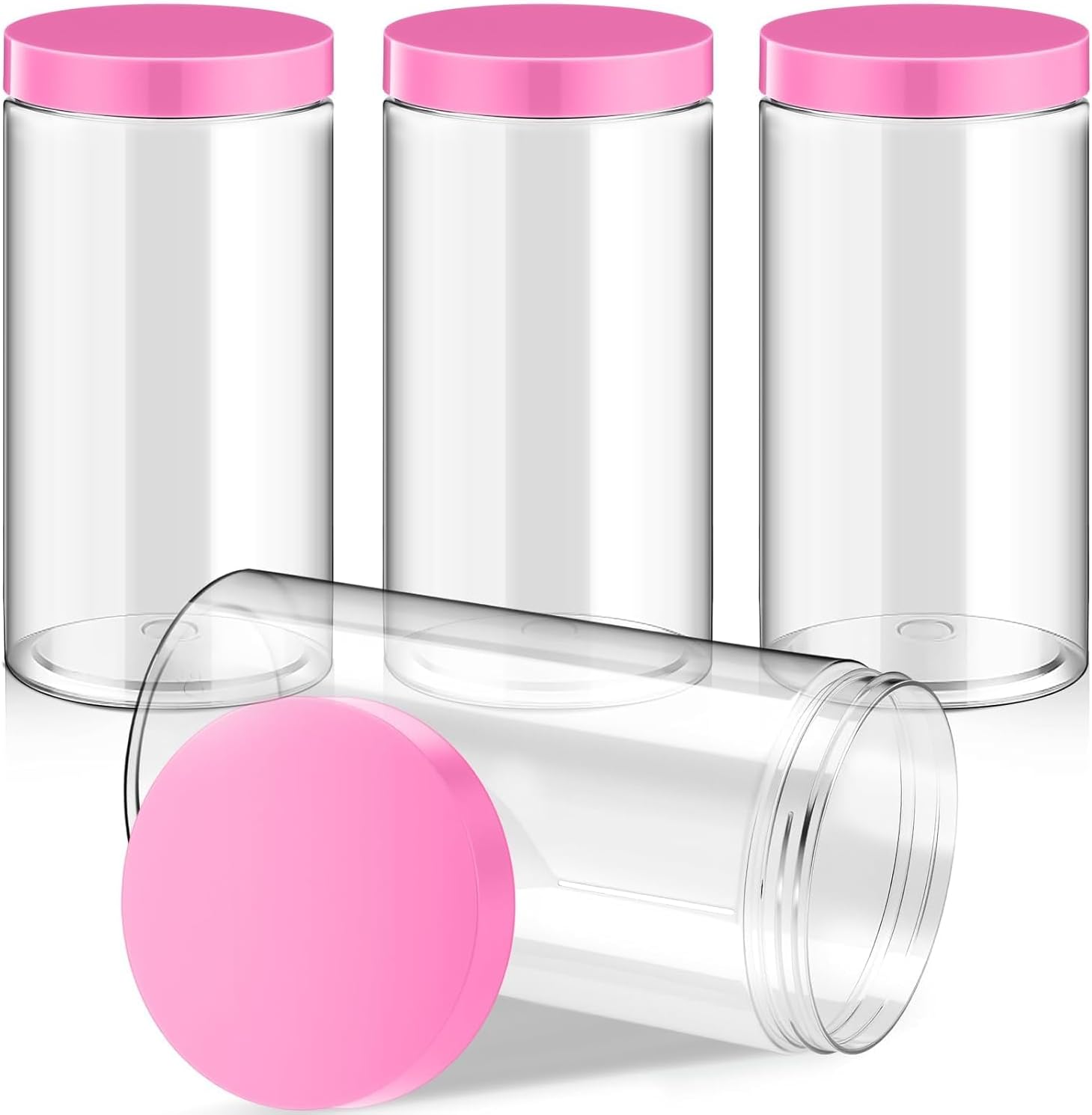 SATINIOR 12 Pack 32 oz Plastic Container Jars with Lids Round Clear Travel Cosmetic Container Slime Jars for Toiletries, Lotion, Cream, Ointments, Makeup, Rhinestone, Samples, Kitchen Storage(Pink)