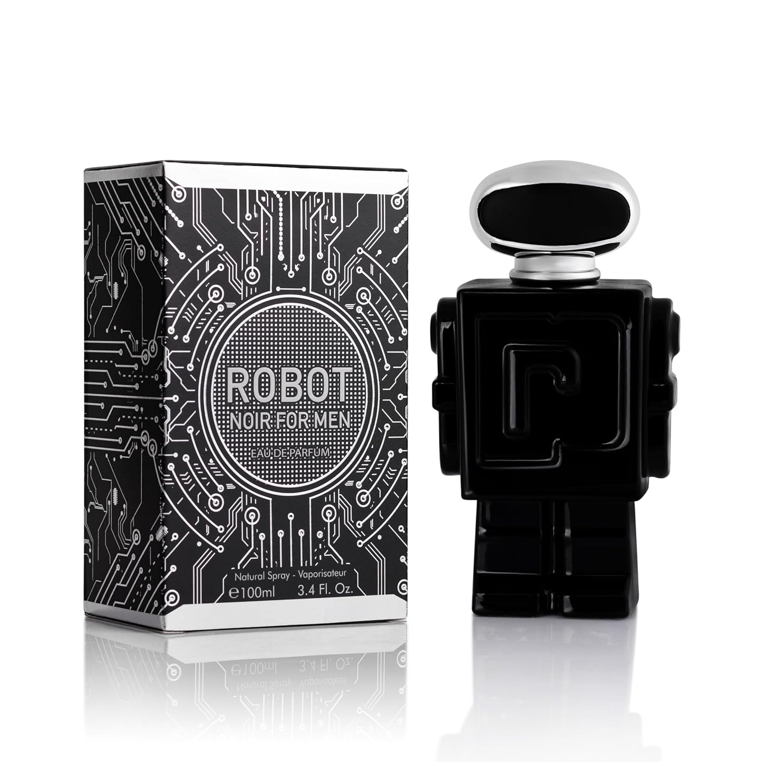 Robot Noir for Men - Fresh Woody Fragrance - Top Notes of Cardamom, Rhubarb, Bergamot & Lemon - base Scents of Vanilla, Tolu Balsam & Haitian Vetiver - Elegant 100ml Bottle, Parfume for Men