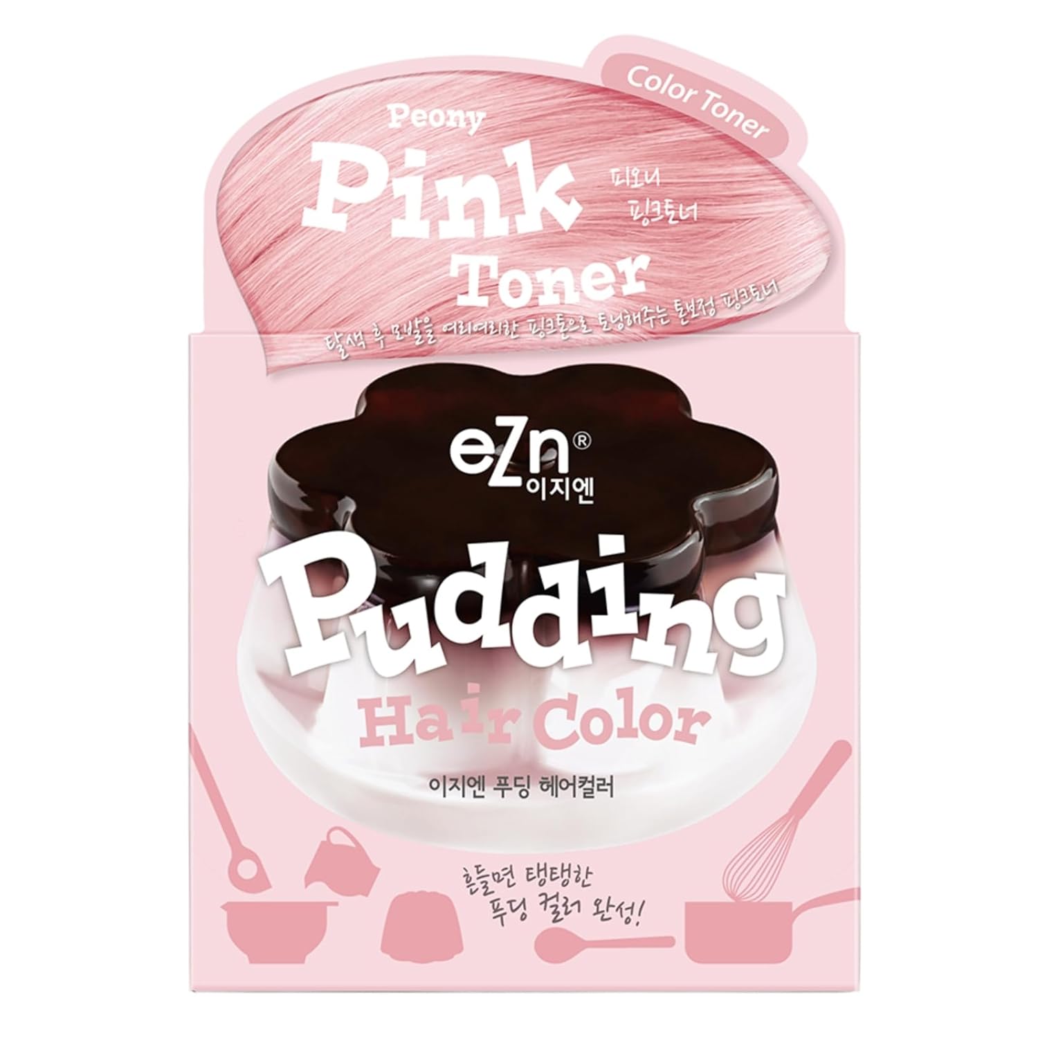 eZn Pudding Hair Dye, Ammonia-Free, Semi-Permanent DIY Korean Hair Dye Color with Keratin, Odorless Gentle for Sensitive Skin No Skin Irritation (Pink_Toner)