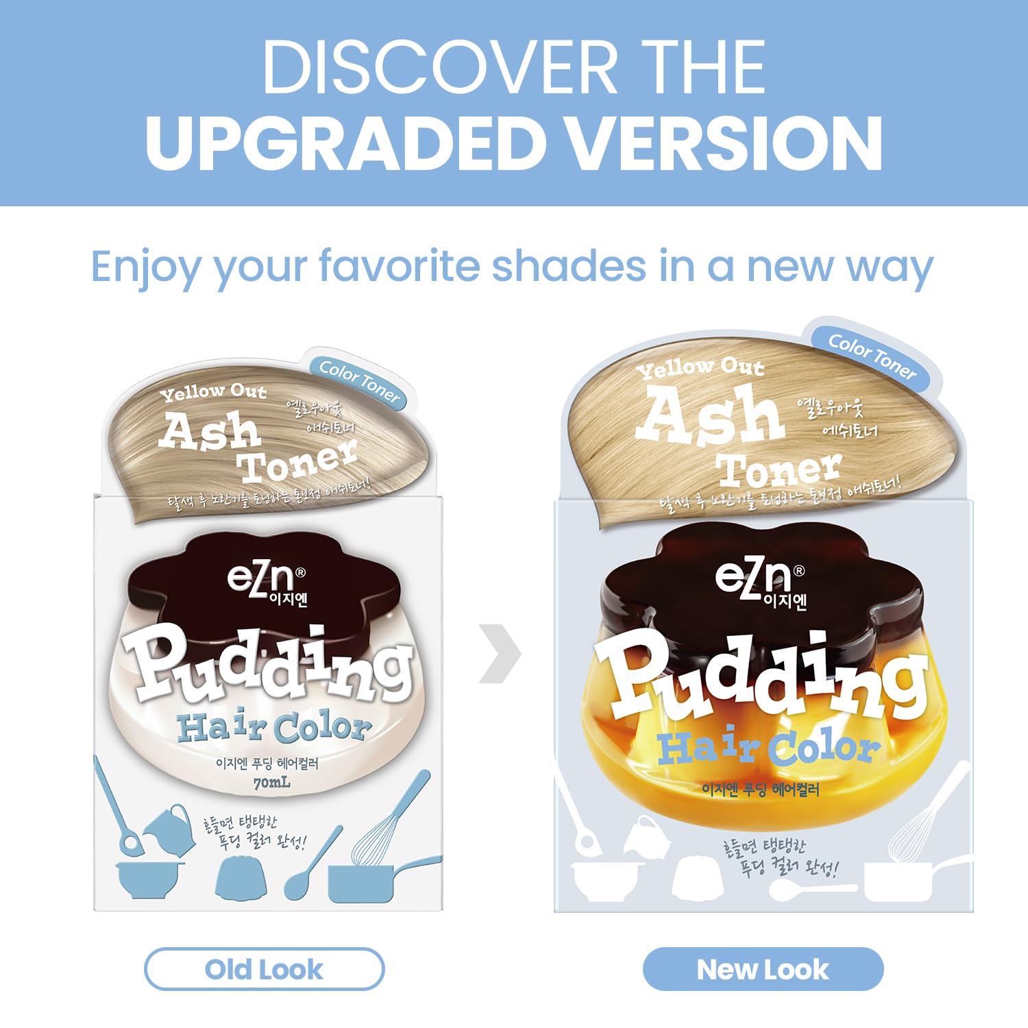 eZn Pudding Hair Dye, Ammonia-Free, Semi-Permanent DIY Korean Hair Dye Color with Keratin, Odorless Gentle for Sensitive Skin No Skin Irritation (Ash_Toner)