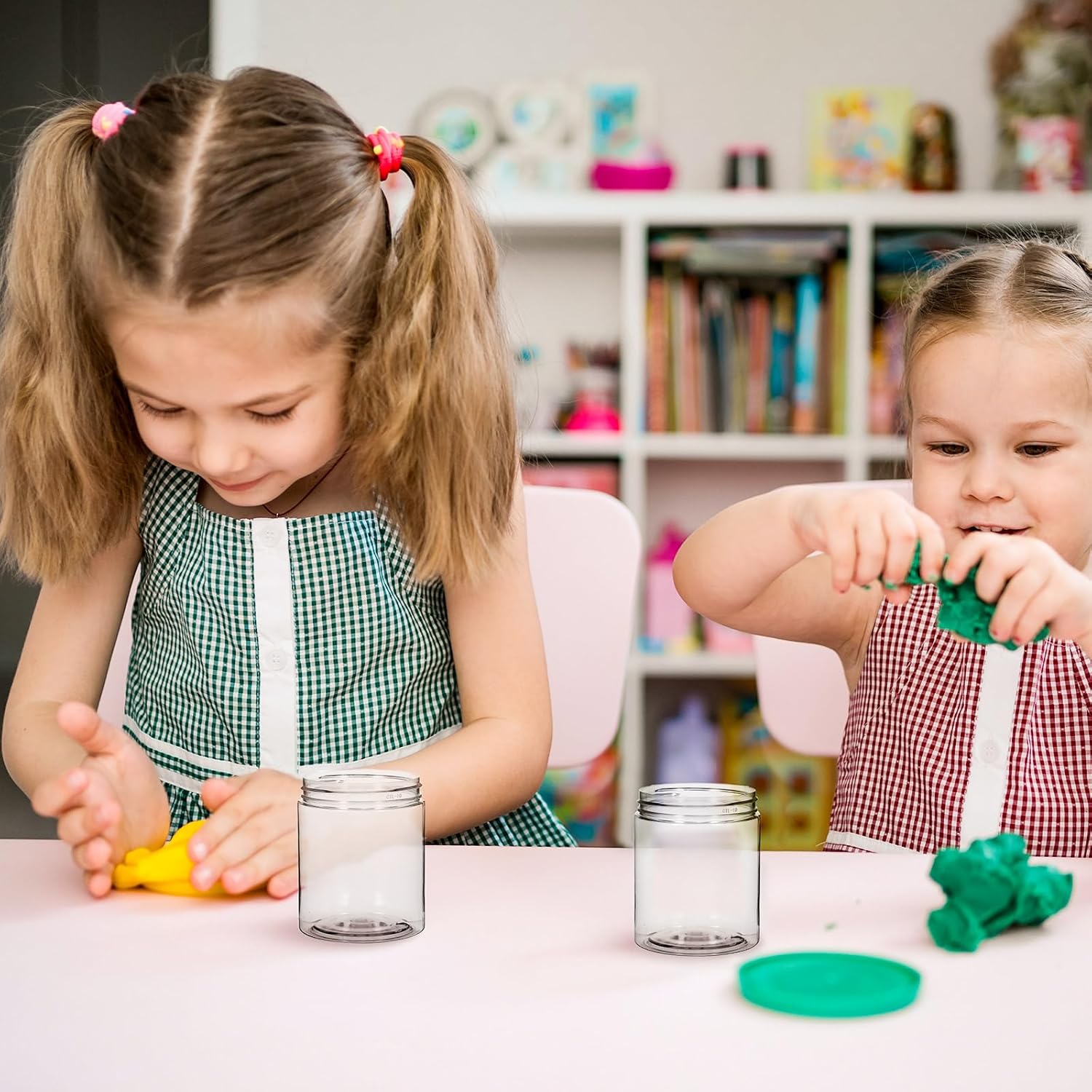 - Material : plastic clear jars with lids
