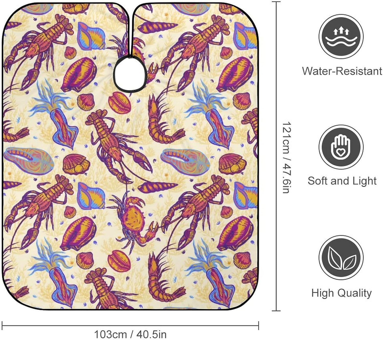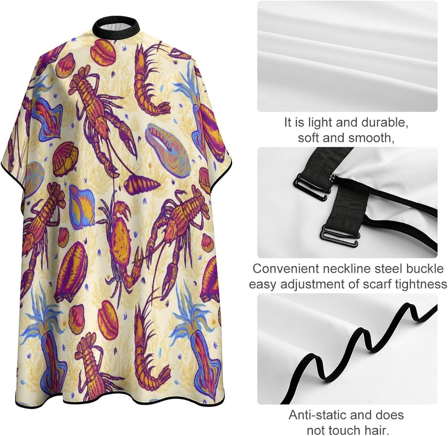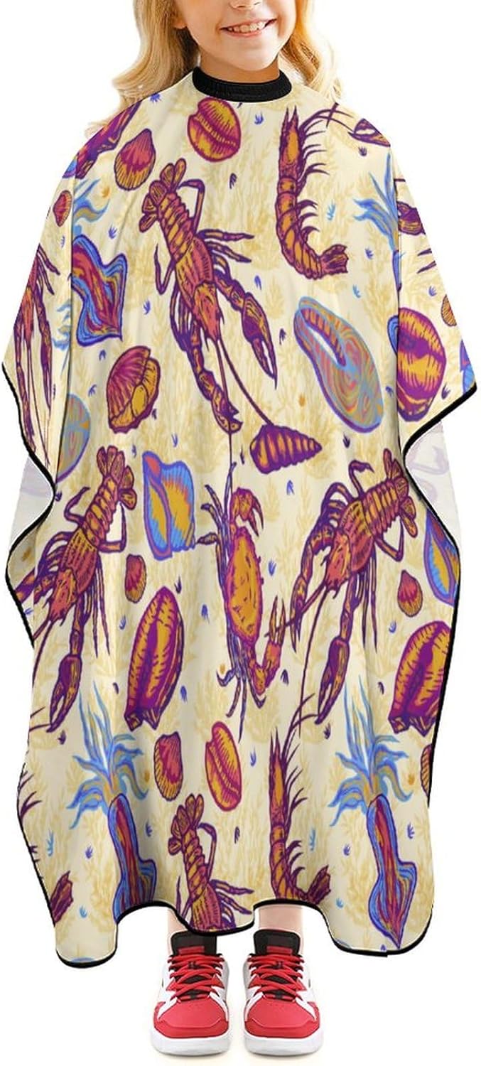 - CARTOON BARBER CAPE DESIGN: Lobster Print barber cape has a certain waterproof ability and will not get the child's clothes wet during hair washing or hair dyeing. The fabric is smooth, doesn't stick to your hair, and cleans up very easily. Just shake the hairdresser's apron gently to remove broken hair.