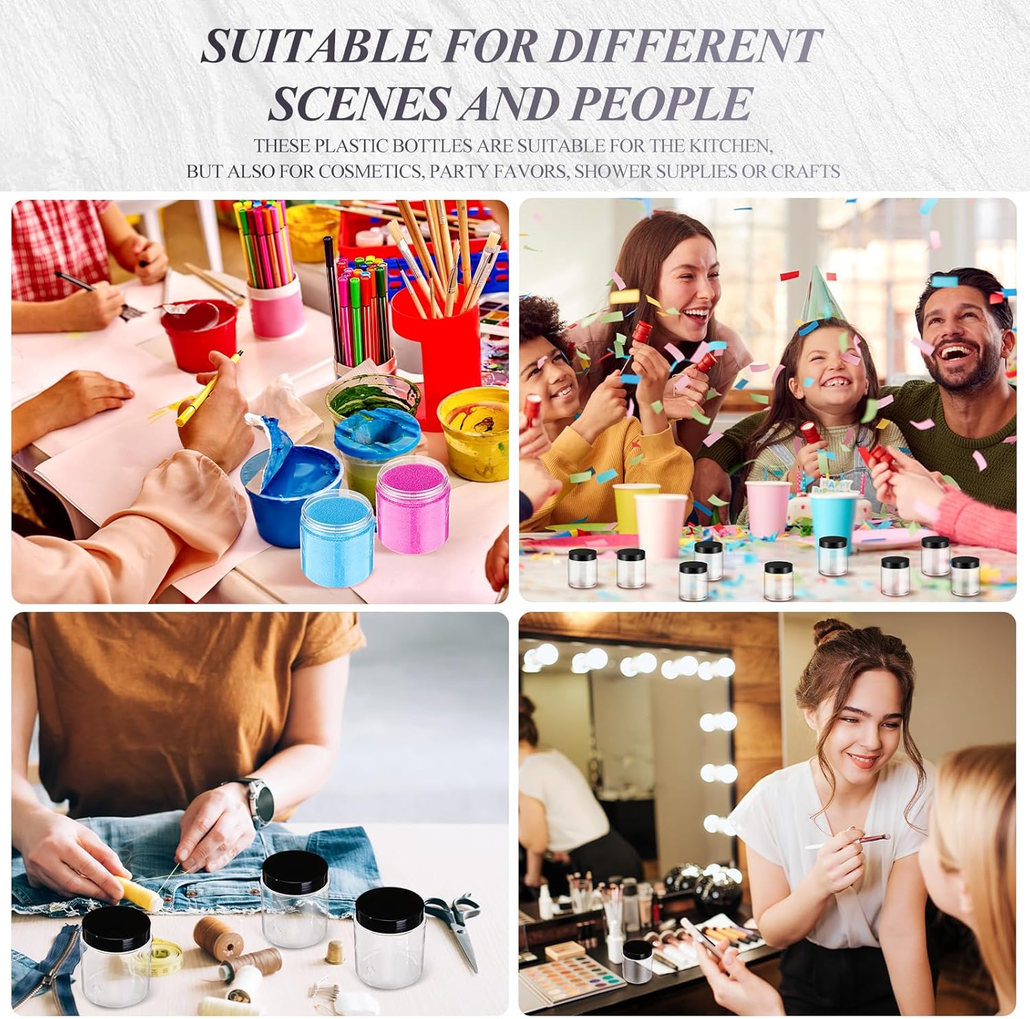 - Quality material: these round plastic pot jars adopt quality PET plastic, not easy to be broken, with good impact resistance, keep everything neat and organized