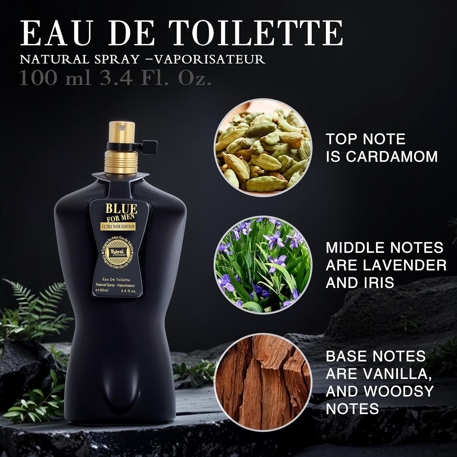 Hybrid & Company Blue For Men Ultra Noir Eau De Toilette Vaporisateur Natural Spray 3.4 Fl Oz