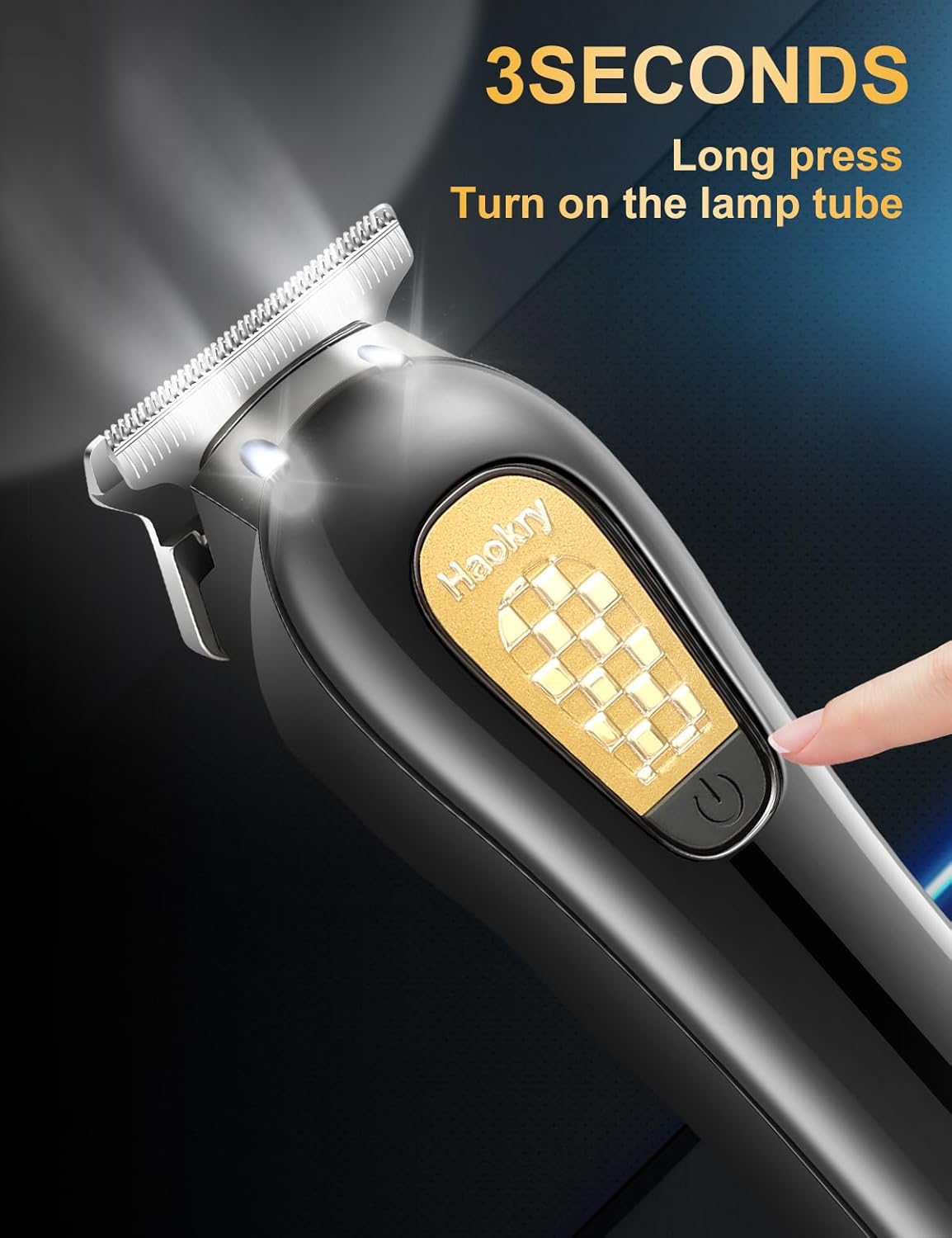 - Long Battery Life and Auxiliary Lighting Trimmer: The hair clippers feature an impressive 3.5-hour runtime on a single charge, and the LCD display clearly shows battery life. The wireless design makes it easy to maneuver, and the USB charging capability with global voltage support ensures convenience wherever you are.Turn on the lighting function of the small trimmer,simply press and hold the switch after turning it on to activate it