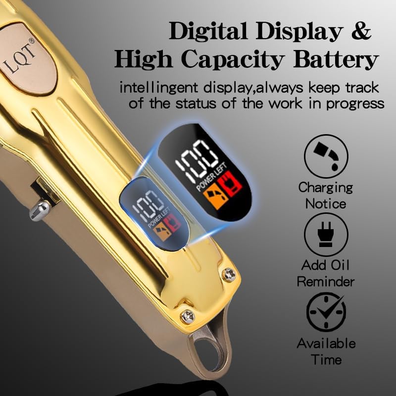 Professional Hair Clipper Set, Gold, LED Display, with Trimmer, 8 Guide Combs, Barber Shaver Set, with Travel Case and Haircut Cape (Gold)