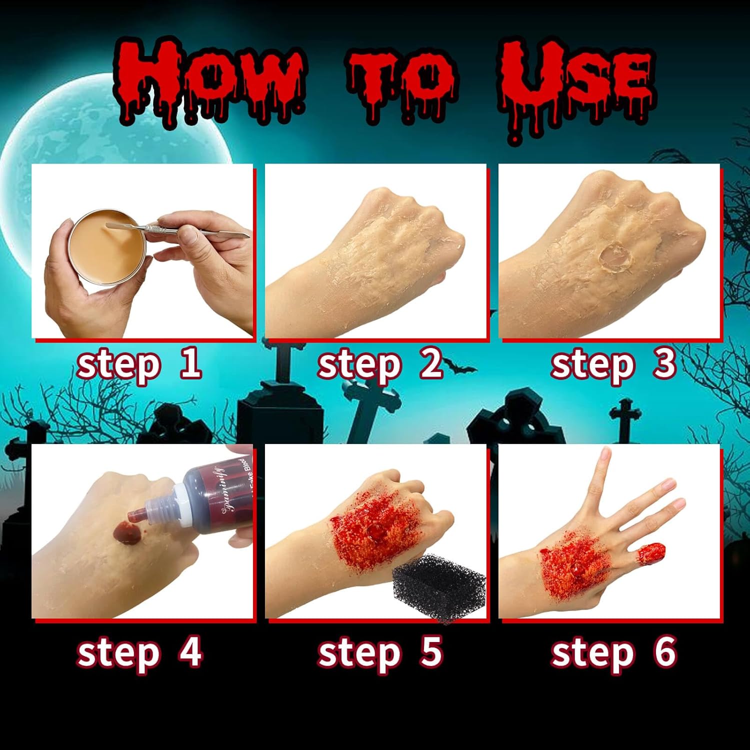 - CREATE SPECIAL EFFECT:Great for building a witch nose or fake wounds.You can use scar makeup halloween kit to create gruesome effects such as burns, fake neck wound, gashes, scars, cuts, bites and more