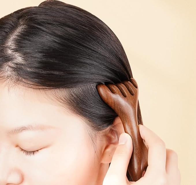 Golden Sandalwood Massager Tool Eye Massage Device Scalp Gua Sha Wooden Comb Forehead Massage Tools with Gift Box (6 Claws)