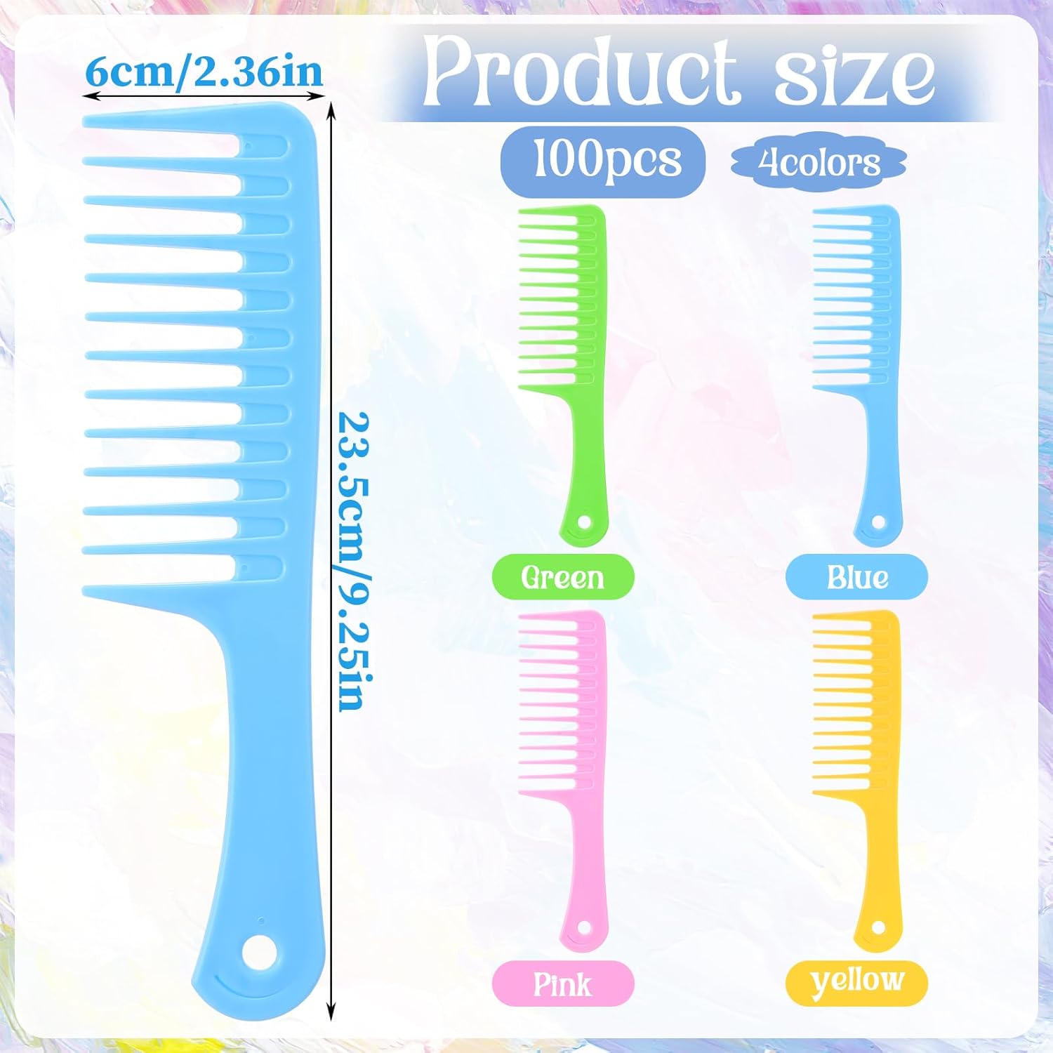 100 Pieces Colorful Pocket Comb Bulk Detangling Wide Tooth Flat Hair Comb with Round Handle for Women Men Barber Blending Curly Long Wet Hair Cutting, 4 Colors