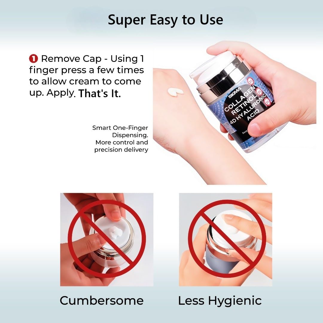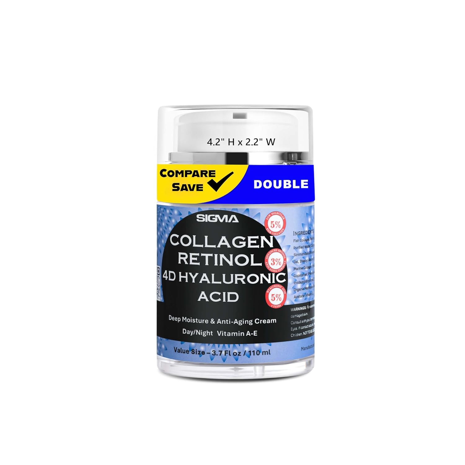 Anti-Aging Face Cream $6.47/oz - 5% Marine Collagen 3% Retinol 5% Hyaluronic Acid - Wrinkle Firming Moisturizer Face Neck - Professional Strength 3.7oz - 1 Finger Cream Dispenser