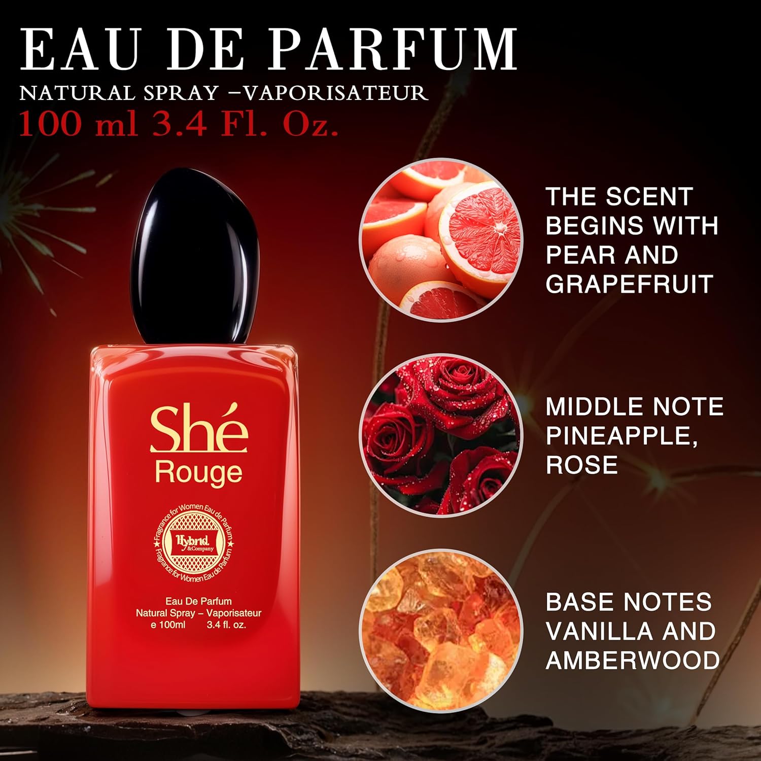 Hybrid & Company Women She Rouge Eau De Parfum Vaporisateur Natural Spray 3.4 Fl Oz