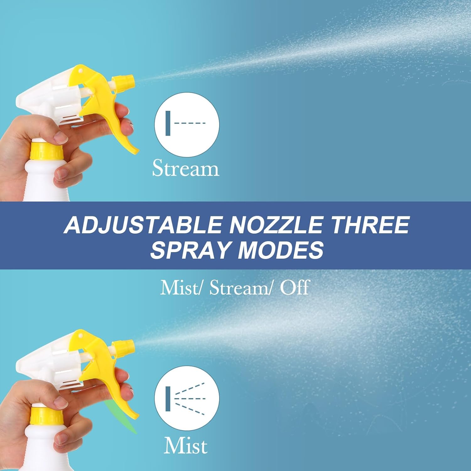 - Adjustable Nozzle Heavy Duty Spray Bottles: these water spray bottles are designed with an adjustable nozzle, there are 3 different modes: close, mist, and stream; Easy to rotate and use, the straw goes straight to the bottom of the bottle, avoiding wasting and spraying out; Providing convenience to your life