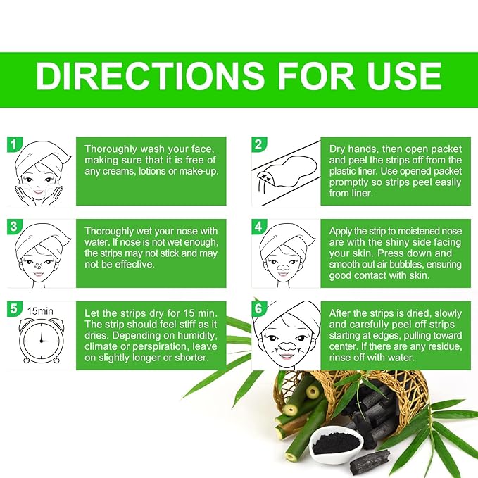 - Blackhead nose strips is made from premium charcoal,effectively control oil and impurities in pores,gentle pull out even more dirt,no irritation and no breakouts after using,the adhesion is just right. It can also effectively dissolve excess oil on the face, purify pores and slow down sebum secretion; it can pull up blackheads, whiteheads, impurities and dirt from the root of the pores.